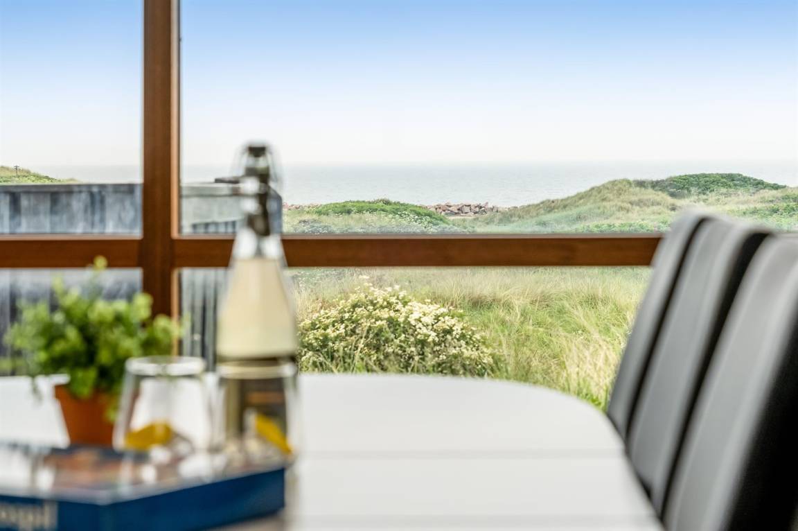 Ferienhaus mit Blick auf die Nordsee und den Dünen.