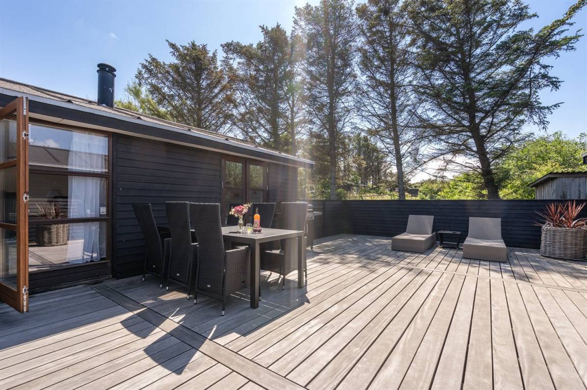 DraußenDie Ferienunterkunft liegt auf einem 1440 m² großen Naturgrundstück. Die Entfernung zum Meer beträgt 600 m. Die nächste Einkaufsmöglichkeit liegt 650 m entfernt. Es steht ein 150 m² Terrassenareal zur Verfügung. Geräteraum.Lagerfeuerstelle. Es steht ein Grill zur Verfügung. Parkplatz auf dem Grundstück.