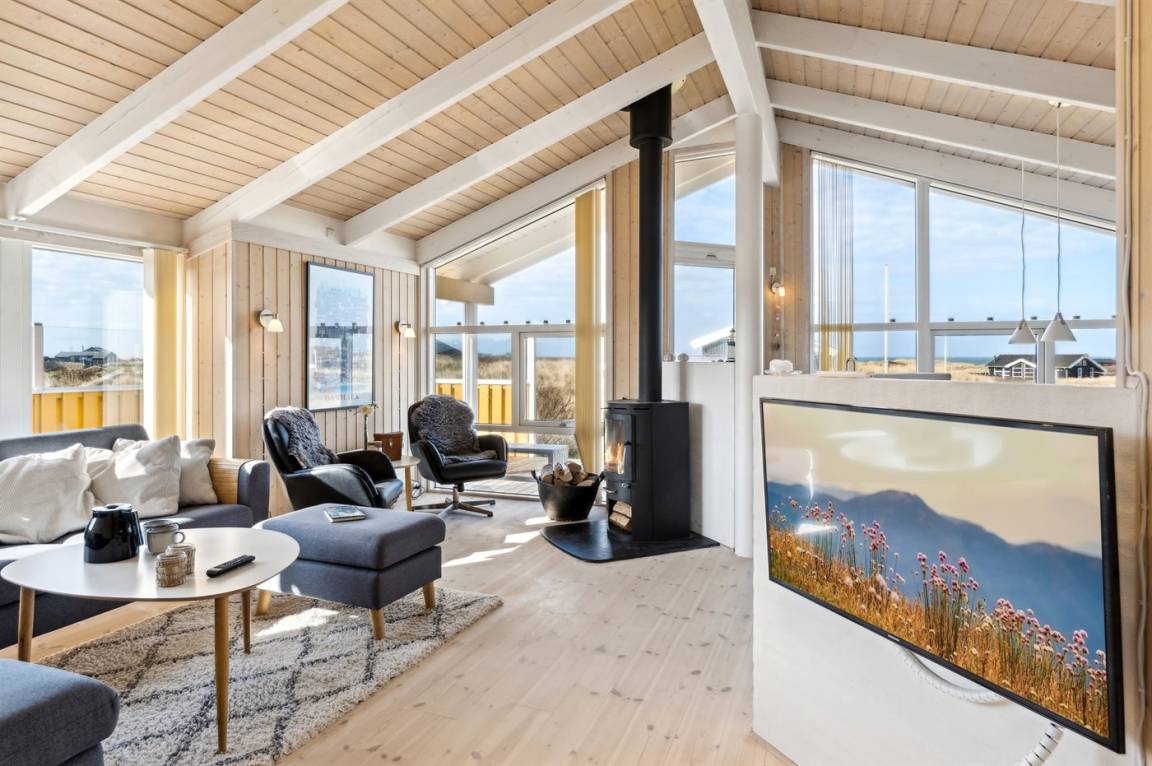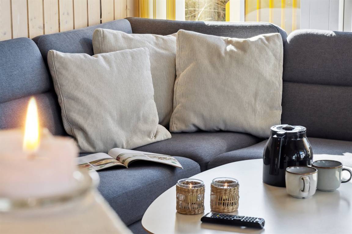 Ferienhaus mit Meerblick und in ruhiger Umgebung gelegen. Beachten Sie 2 Schlafplätze in der Nische im Wohnzimmer.
