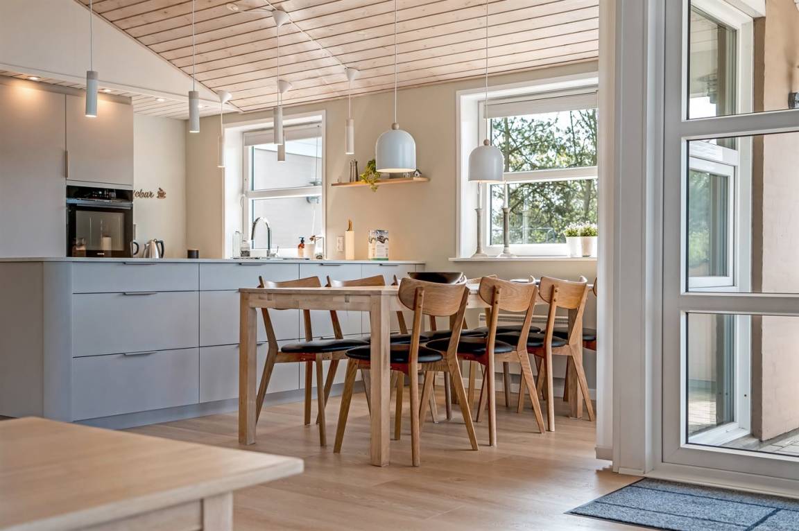 EinrichtungDas Ferienhaus eignet sich für 8 Personen sowie 1 Kleinkind bis zu 3 Jahren. Die Ferienunterkunft hat eine Wohnfläche von 117 m² und wurde 1974 gebaut. 2005 wurde die Ferienunterkunft teilweise renoviert. Es ist erlaubt 1 Haustier mitzubringen. Die Ferienunterkunft ist mit energiesparender Wärmepumpe ausgestattet. Fußbodenheizung in allen Klinkerböden. Die Ferienunterkunft ist mit Waschmaschine ausgestattet. Wäschetrockner. Tiefkühlmöglichkeit mit 60 Liter Nutzinhalt. Es gibt außerdem einen Kaminofen. Für die jüngsten Feriengäste ist 1 Kinderhochstuhl vorhanden.