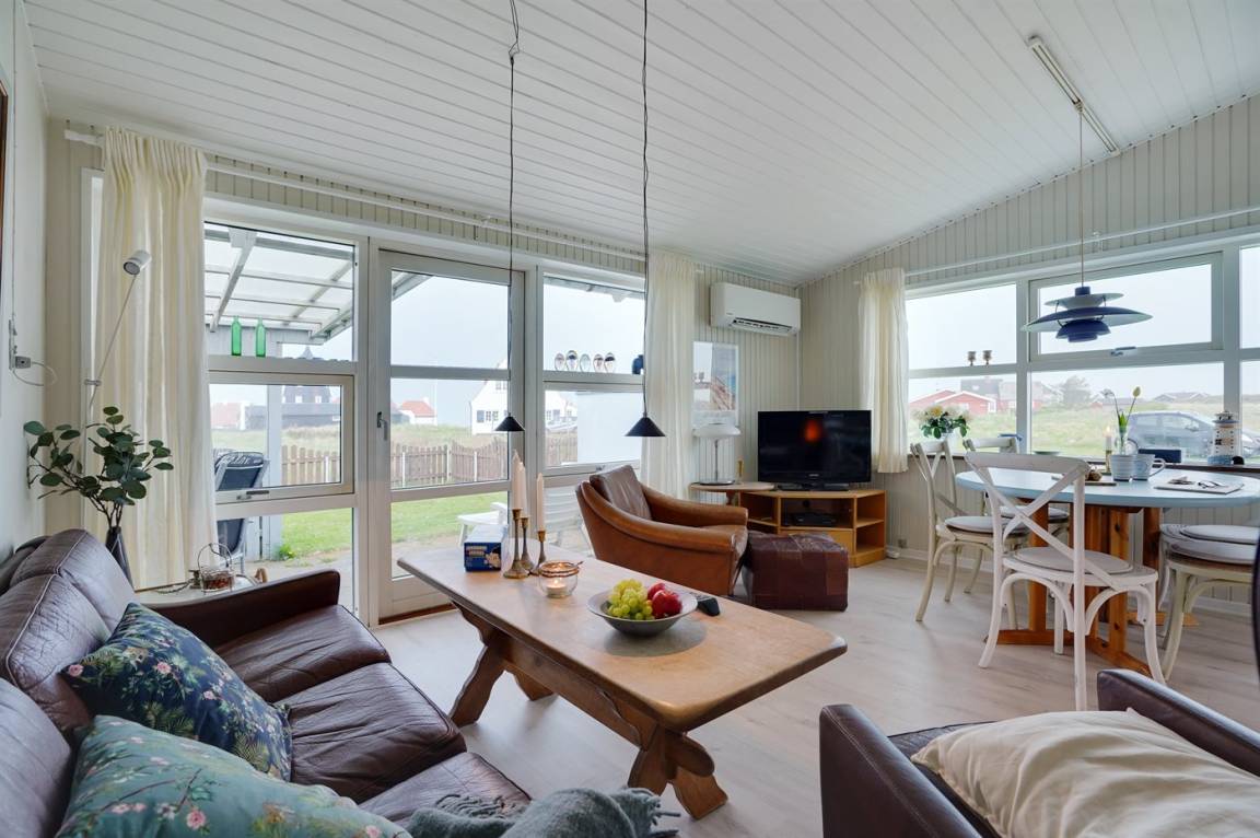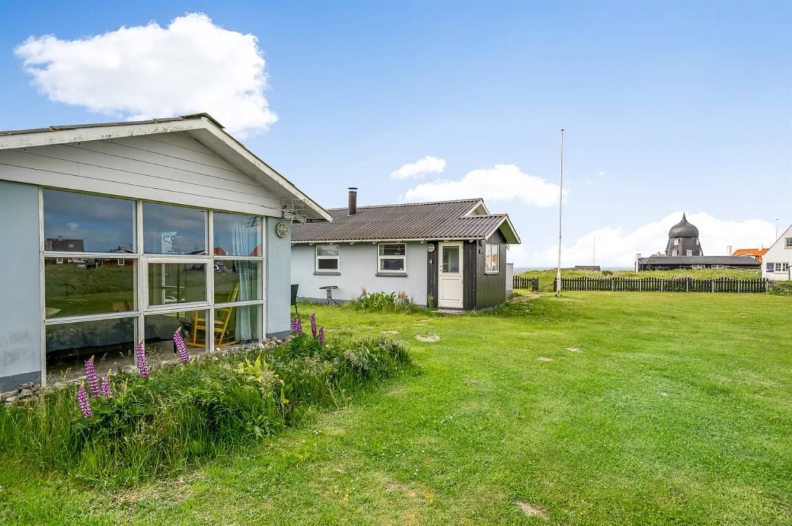 Gemütliches Ferienhaus in erhöhter Lage im Zentrum von Lønstrup und mit Meerblick von Haus und Garten aus. Auf dem sehr großen Grundstück befindet sich ein Gästehaus mit 4 Schlafplätzen.