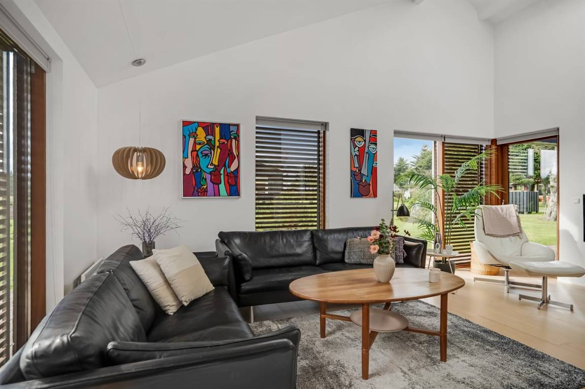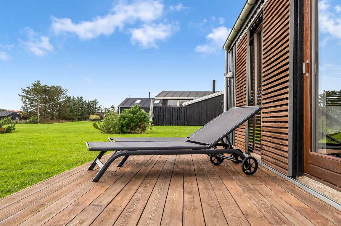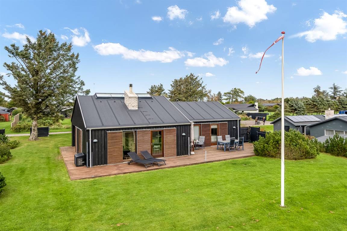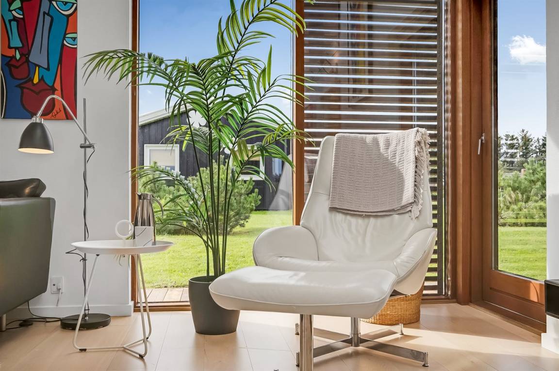 Diese architektonische Perle von einem Ferienhaus liegt im schönen Feriengebiet Lønstrup und wurde von einem Architekten entworfen, der sich auf energie- und umweltfreundliche Häuser spezialisiert hat. Das Haus ist sowohl geräuscharm als auch energieeffizient und nutzt das Tageslicht den ganzen Tag über optimal aus.