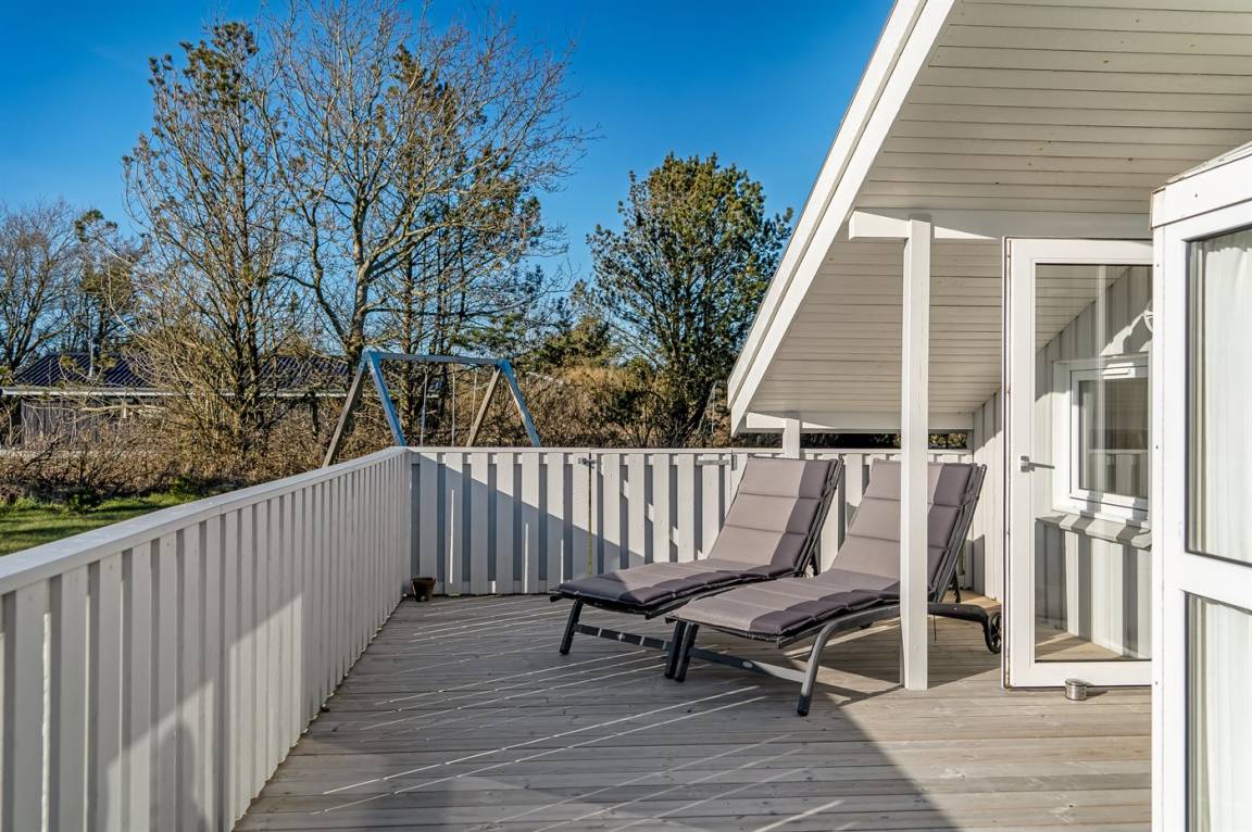 Die Ferienunterkunft liegt auf einem 1399 m² großen Naturgrundstück. Die Entfernung zum Meer beträgt 1200 m. Es steht ein offenes Terrassenareal zur Verfügung. Außerdem gibt es überdachte Terrasse. Geräteraum. Schaukel. Sandkasten. Fußballtor. Es steht ein Grill zur Verfügung. Es ist ein Ladestecker für Elektroautos installiert. Parkplatz auf dem Grundstück.