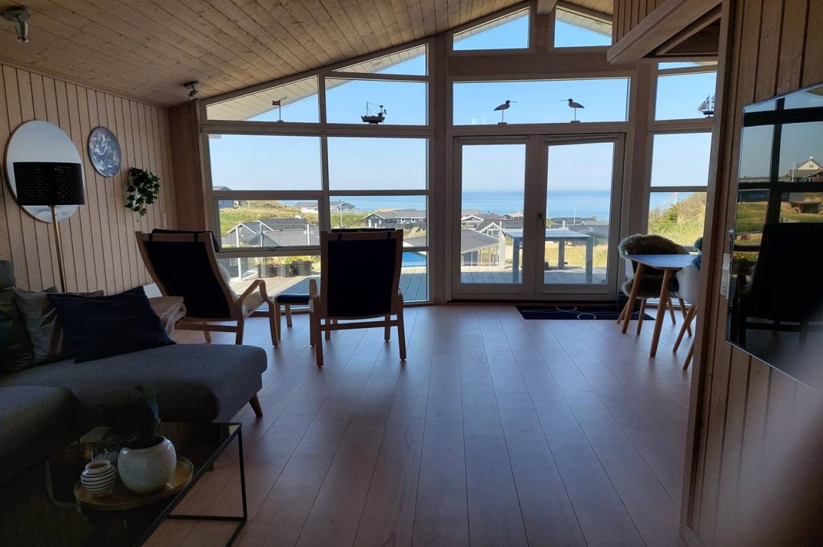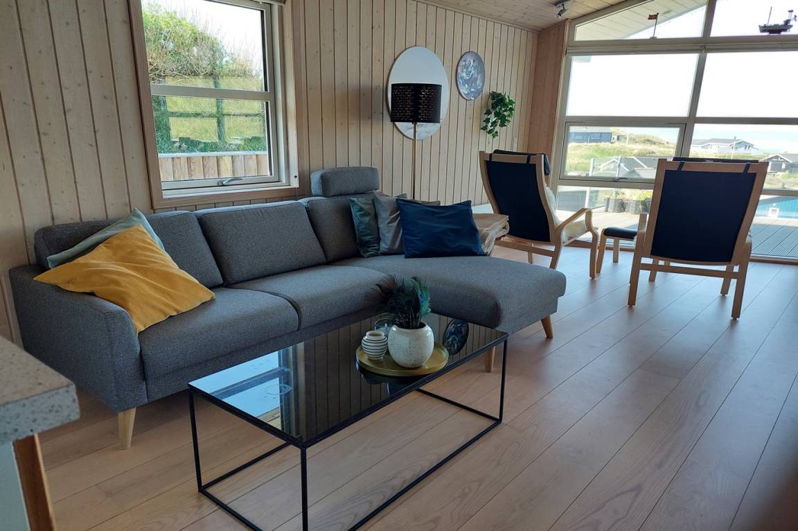 Willkommen in diesem fantastischen Ferienhaus, das hoch in einem schönen Ferienhausgebiet nördlich von Lønstrup liegt - eine wahre Oase in der Nähe des schönen Strandes und des ganzjährig geöffneten Lebensmittelgeschäfts. Das bemerkenswerteste Merkmal dieses Ferienhauses ist seine erhöhte Lage, eingebettet in die äußerste Inlanddüne von Harrerenden, wo eine etwa 3 m breite Schotterstraße Sie zu dieser atemberaubenden Aussicht auf das Meer führt, die Sie sowohl vom Haus aus als auch auf dem geräumigen Grundstück genießen können. Vom höchsten Punkt des Grundstücks aus haben Sie freie Sicht von Lønstrup Klint im Süden bis zum Leuchtturm von Hirtshals im Norden.
