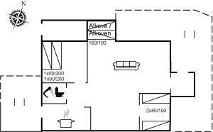 SchlafverhältnisseDie Schlafplätze verteilen sich auf 2 Schlafräume. 2 Schlafplätze in einem Doppelbett. 2 Schlafplätze in Einzelbetten.2 Schlafplätze im Alkoven.
