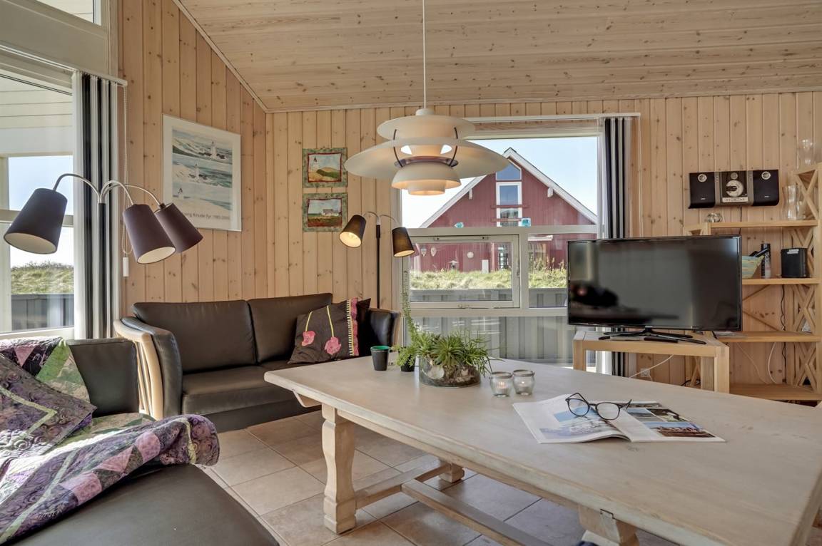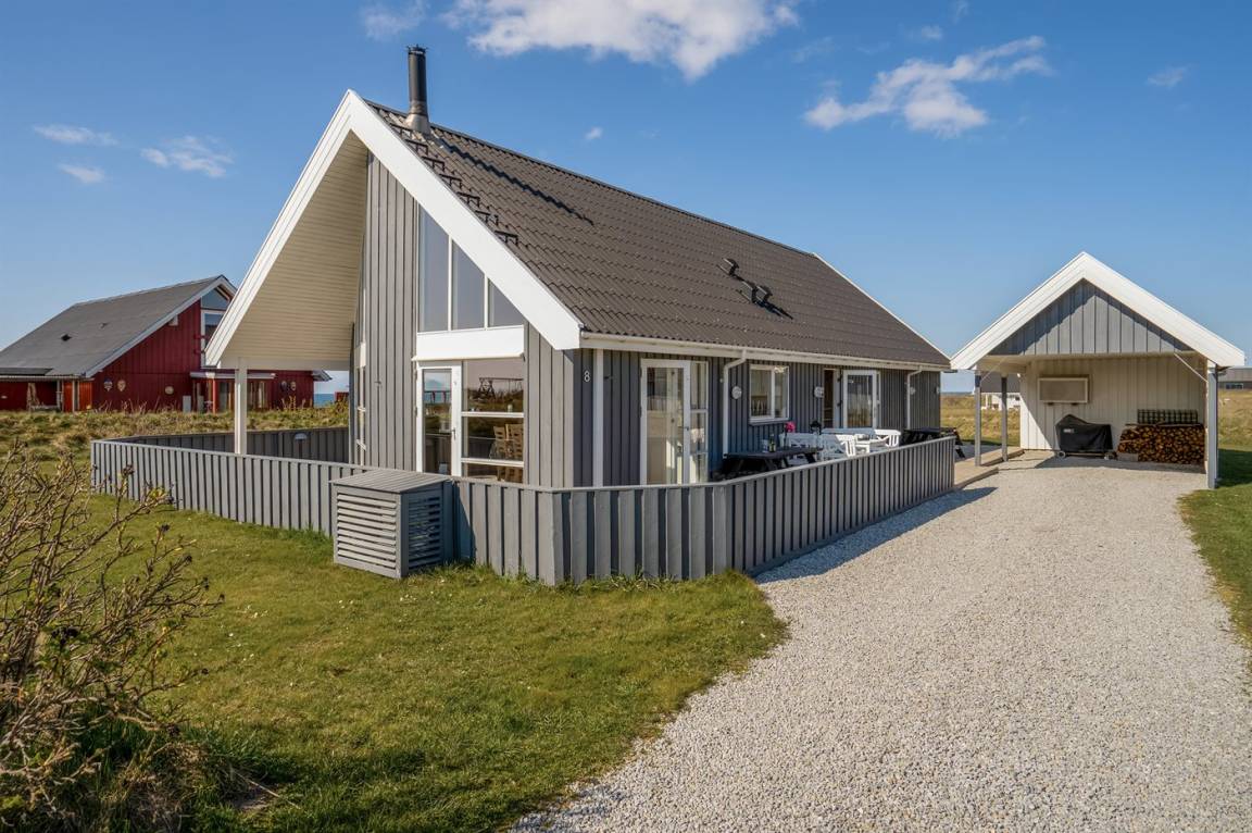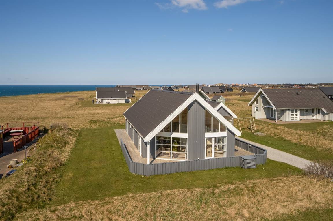 Prachtvolles 2-stöckiges Ferienhaus aus Holz, 2004 gebaut, auf einem Dünengrundstück nur 150 m vom Meer entfernt und dicht am Ferienort Lønstrup gelegen. Vom sowohl Haus als Grundstück gibt es eine wunderschöne Aussicht über das Meer. Beheizte Klinkerböden im Erdgeschoss, Holzböden in den Zimmern und im Obergeschoss. Hell gebeizte Wände und Decken. 2 Badezimmer mit Fußbodenheizung und Duschnische; eins davon mit 2-Pers.-Whirlpool und Sauna. Schöne, gut ausgestattete Küche mit u. a. Geschirrspüler, Mikrowelle, Tiefkühlgerät, Umluftofen und Herd mit Ceran-Feld. Nett möbliertes Wohnzimmer mit Kaminofen, TV mit Gemeinschaftantenne, Video und DVD-Spieler sowie Stereoanlage mit CD-Spieler. Zusätzliches TV im Obergeschoss. 4 gute Zimmer; 2 mit Doppelbett und 2 mit 2 Einzelbetten. Ferner kostenlose, kabellose Internetverbindung (Computer ist mitzubringen),Waschmaschine und Wäschetrockner vorh. Kinderbett, Kinderhochstuhl und Schaukel. Carport.