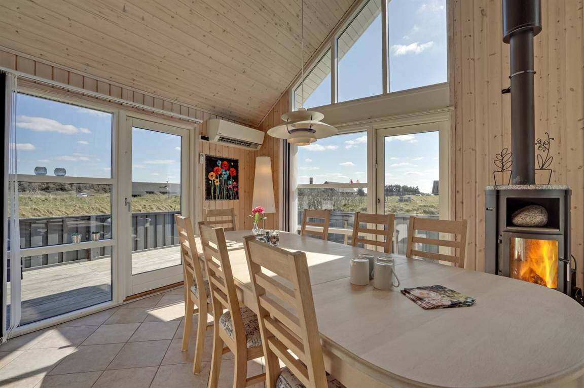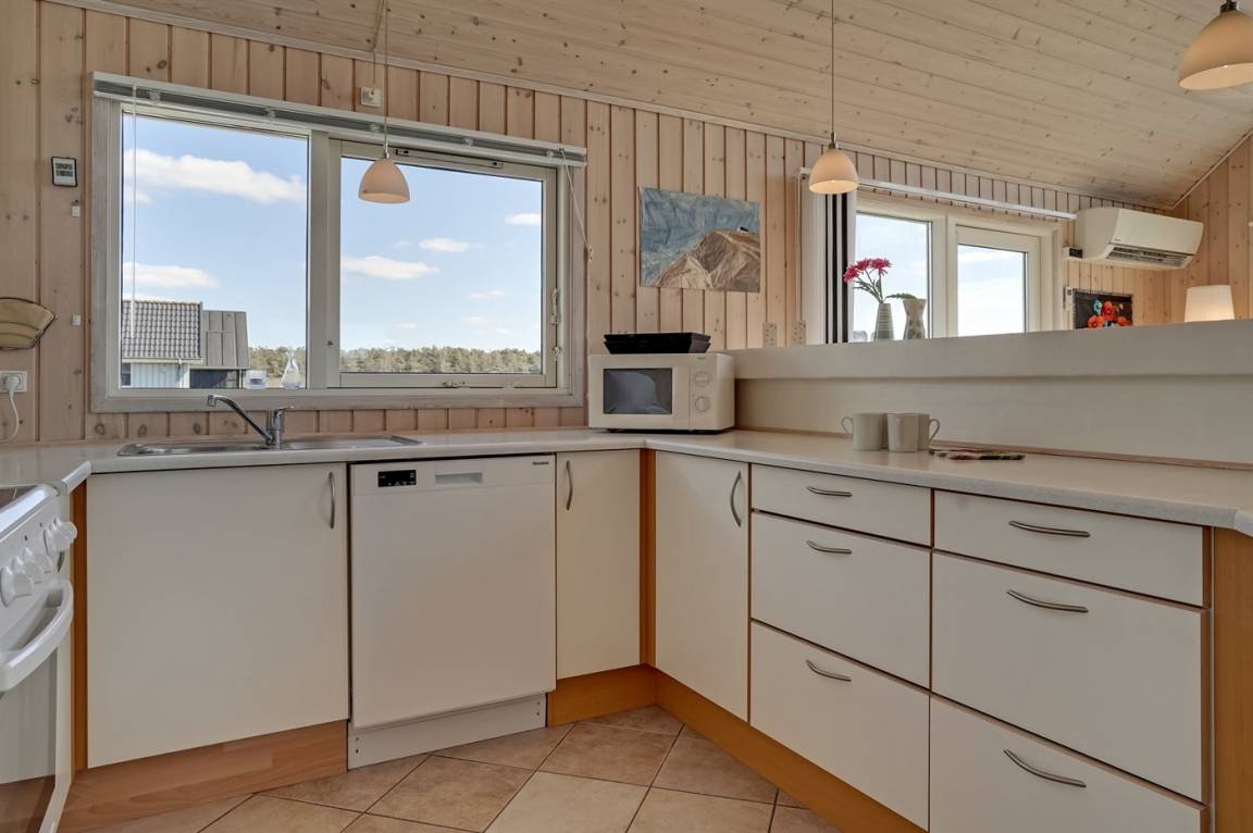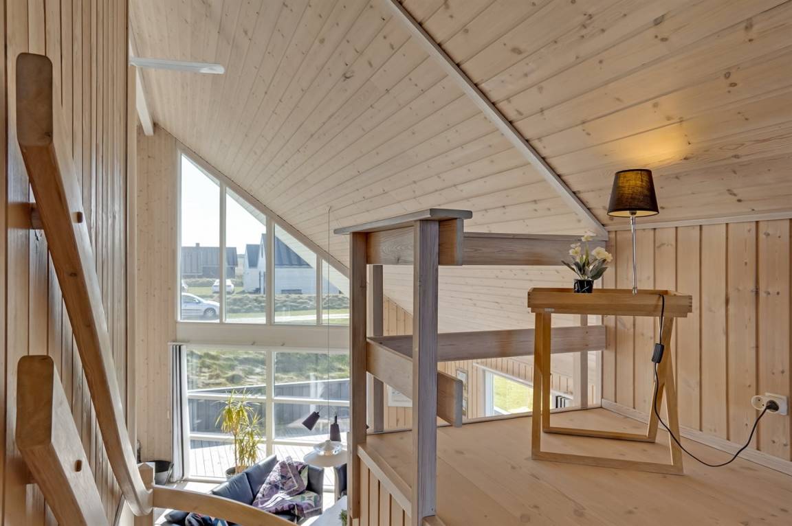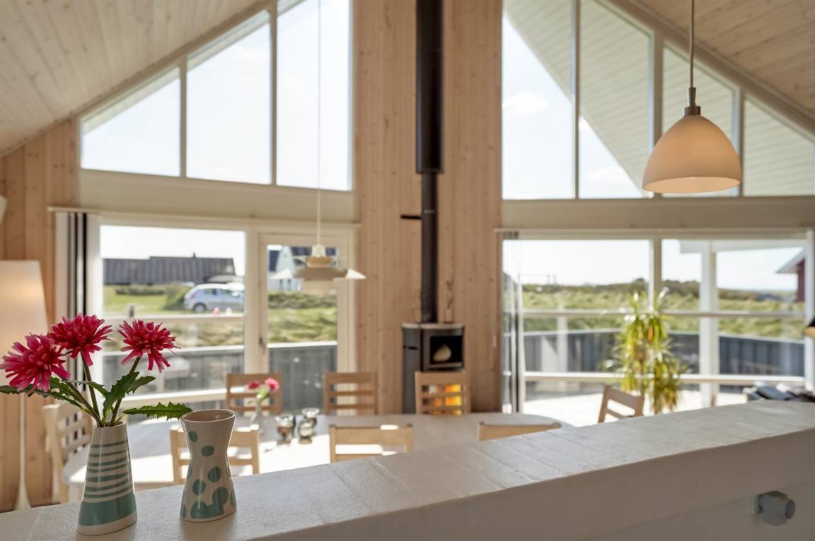 Prachtvolles 2-stöckiges Ferienhaus aus Holz, 2004 gebaut, auf einem Dünengrundstück nur 150 m vom Meer entfernt und dicht am Ferienort Lønstrup gelegen. Vom sowohl Haus als Grundstück gibt es eine wunderschöne Aussicht über das Meer. Beheizte Klinkerböden im Erdgeschoss, Holzböden in den Zimmern und im Obergeschoss. Hell gebeizte Wände und Decken. 2 Badezimmer mit Fußbodenheizung und Duschnische; eins davon mit 2-Pers.-Whirlpool und Sauna. Schöne, gut ausgestattete Küche mit u. a. Geschirrspüler, Mikrowelle, Tiefkühlgerät, Umluftofen und Herd mit Ceran-Feld. Nett möbliertes Wohnzimmer mit Kaminofen, TV mit Gemeinschaftantenne, Video und DVD-Spieler sowie Stereoanlage mit CD-Spieler. Zusätzliches TV im Obergeschoss. 4 gute Zimmer; 2 mit Doppelbett und 2 mit 2 Einzelbetten. Ferner kostenlose, kabellose Internetverbindung (Computer ist mitzubringen),Waschmaschine und Wäschetrockner vorh. Kinderbett, Kinderhochstuhl und Schaukel. Carport.