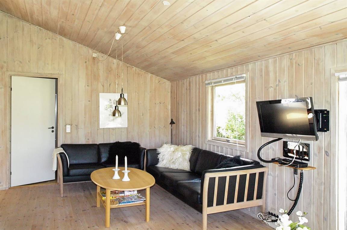 Gemütliches Ferienhaus auf einem teilweise geschlossenen Grundstück mit Rasen und guten Möglichkeiten für Außenaktivitäten gelegen. Im Wohnzimmer befinden sich 2 von den Schlafplätzen im Alkoven.