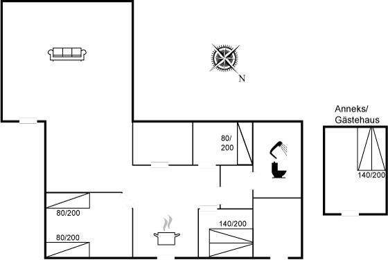 MultimedienIn der Ferienunterkunft gibt es 1 Fernseher mit Smart-TV. Mindestens 4 dänische Fernsehsender. 1-3 schwedische Fernsehsender. 1-3 norwegische Fernsehsender. Mindestens 4 deutsche Fernsehsender. Es steht kabellose Internetverbindung zur Verfügung.