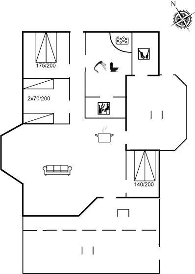 DraußenDie Ferienunterkunft liegt auf einem 1200 m² großen Dünengrundstück.Naturgrundstück. Die Entfernung zum Meer beträgt 300 m. Die nächste Einkaufsmöglichkeit liegt 700 m entfernt. Zur Ferienunterkunft gehört eine 36 m² große, geschlossene Terrassenfläche, die sich auf 2 Terrassen verteilt - davon sind 13 m² überdacht. Geräteraum. Es steht ein Grill zur Verfügung. Parkplatz auf dem Grundstück.