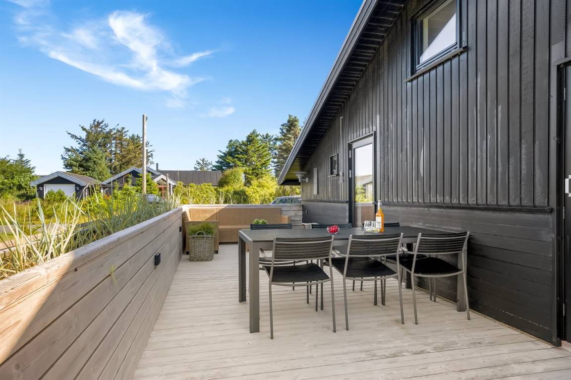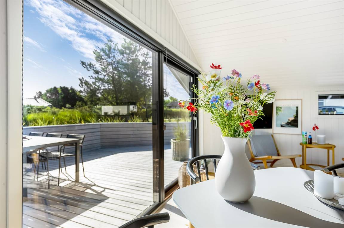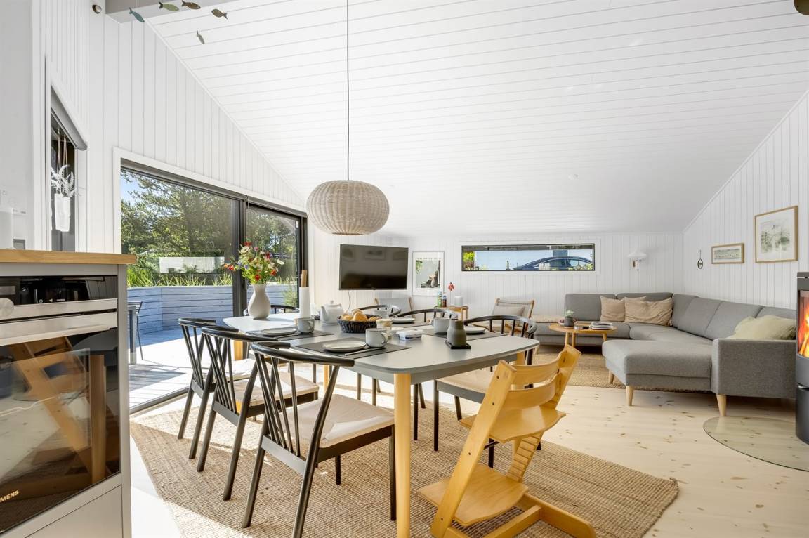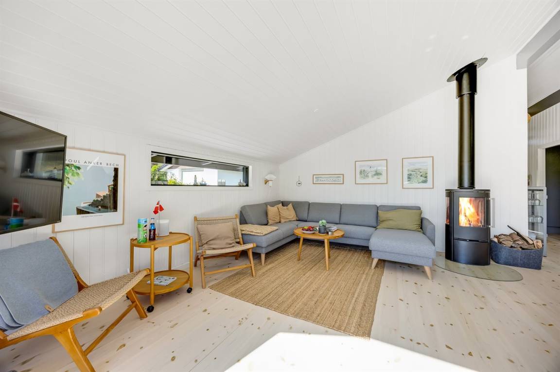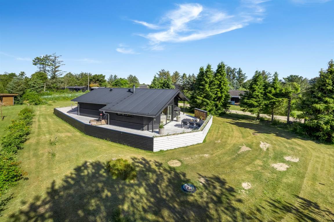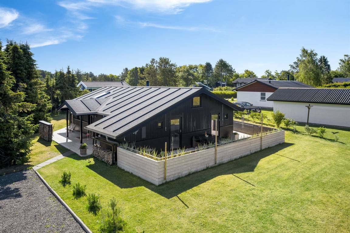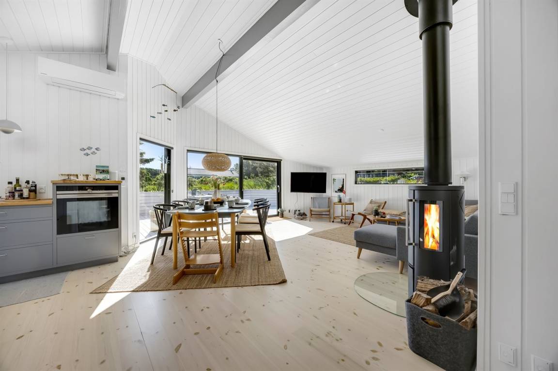 Das Grundstück ist 1.065 m² groß und bietet eine schöne offene und teilweise überdachte Holzterrasse, die sich wie ein natürlicher Erweiterungsraum zum Innenbereich anfühlt. Die Terrasse ist rundum mit windgeschützten Elementen ausgestattet und daher ideal für ganztägige Aufenthalte – egal bei welcher Windrichtung. Ein wunderbarer Ort, um sowohl den Morgenkaffee als auch die Sommerabende zu genießen – für Kinder und Erwachsene gleichermaßen. Zusätzlich gibt es einen Geräteraum, einen Grill und einen einfachen Zugang zu einem Spielplatz nur 300 Meter entfernt. Parkplätze befinden sich direkt am Haus, und es gibt eine Ladesäule für dein E-Auto. Die Entfernung zum Meer und zu Einkaufsmöglichkeiten beträgt ca. 990 Meter.