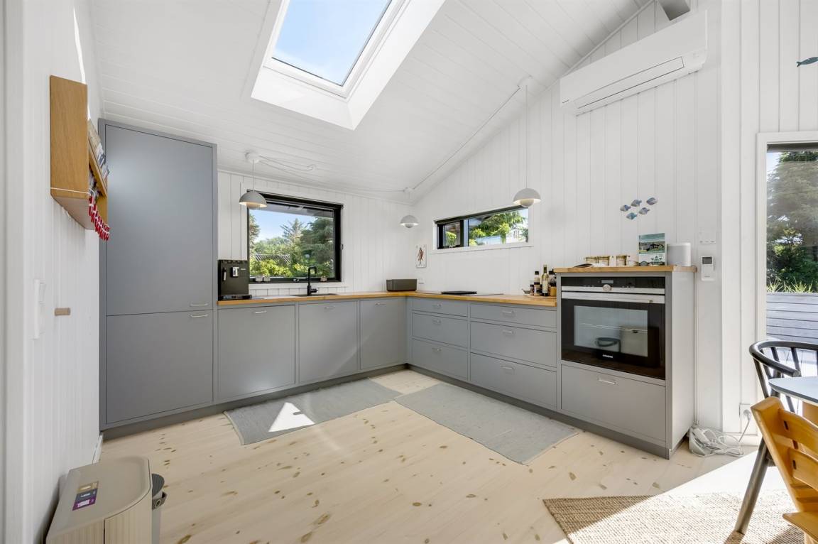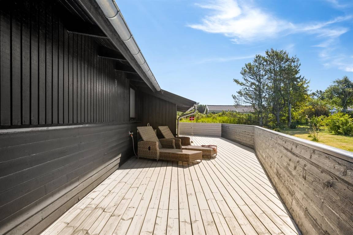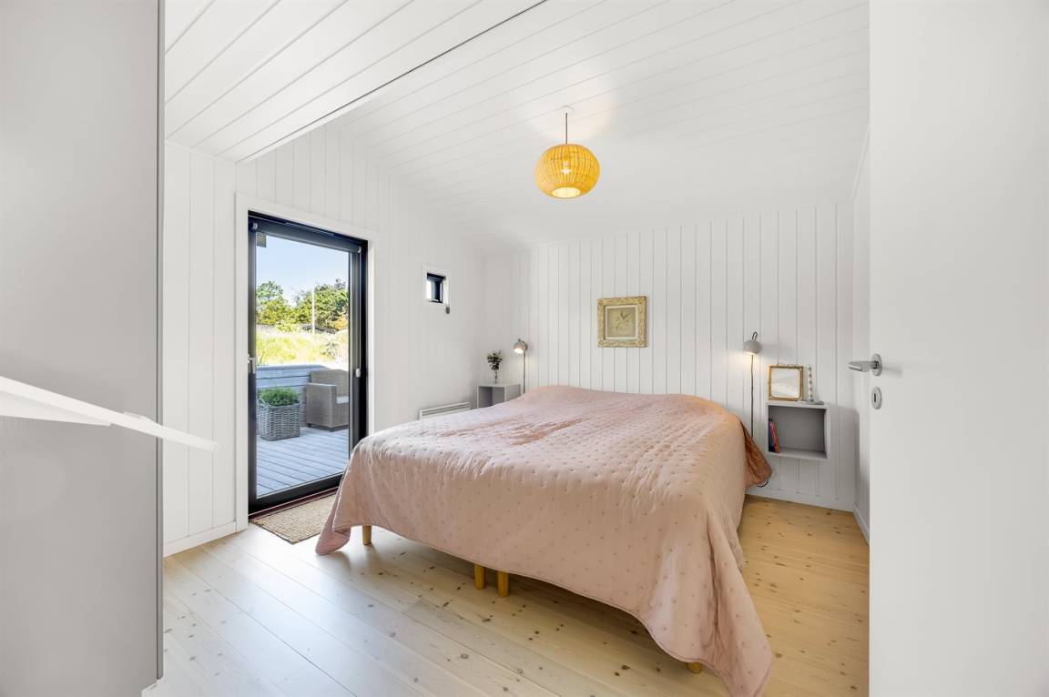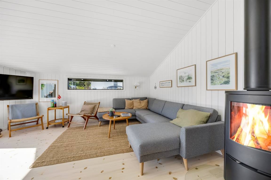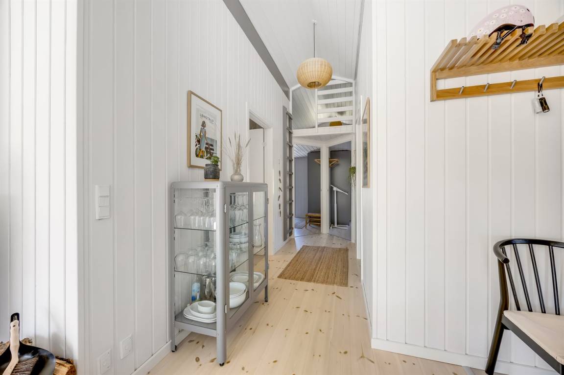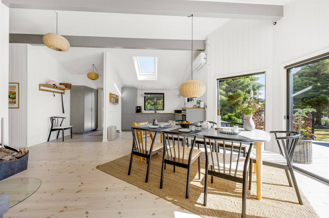 Das Grundstück ist 1.065 m² groß und bietet eine schöne offene und teilweise überdachte Holzterrasse, die sich wie ein natürlicher Erweiterungsraum zum Innenbereich anfühlt. Die Terrasse ist rundum mit windgeschützten Elementen ausgestattet und daher ideal für ganztägige Aufenthalte – egal bei welcher Windrichtung. Ein wunderbarer Ort, um sowohl den Morgenkaffee als auch die Sommerabende zu genießen – für Kinder und Erwachsene gleichermaßen. Zusätzlich gibt es einen Geräteraum, einen Grill und einen einfachen Zugang zu einem Spielplatz nur 300 Meter entfernt. Parkplätze befinden sich direkt am Haus, und es gibt eine Ladesäule für dein E-Auto. Die Entfernung zum Meer und zu Einkaufsmöglichkeiten beträgt ca. 990 Meter.