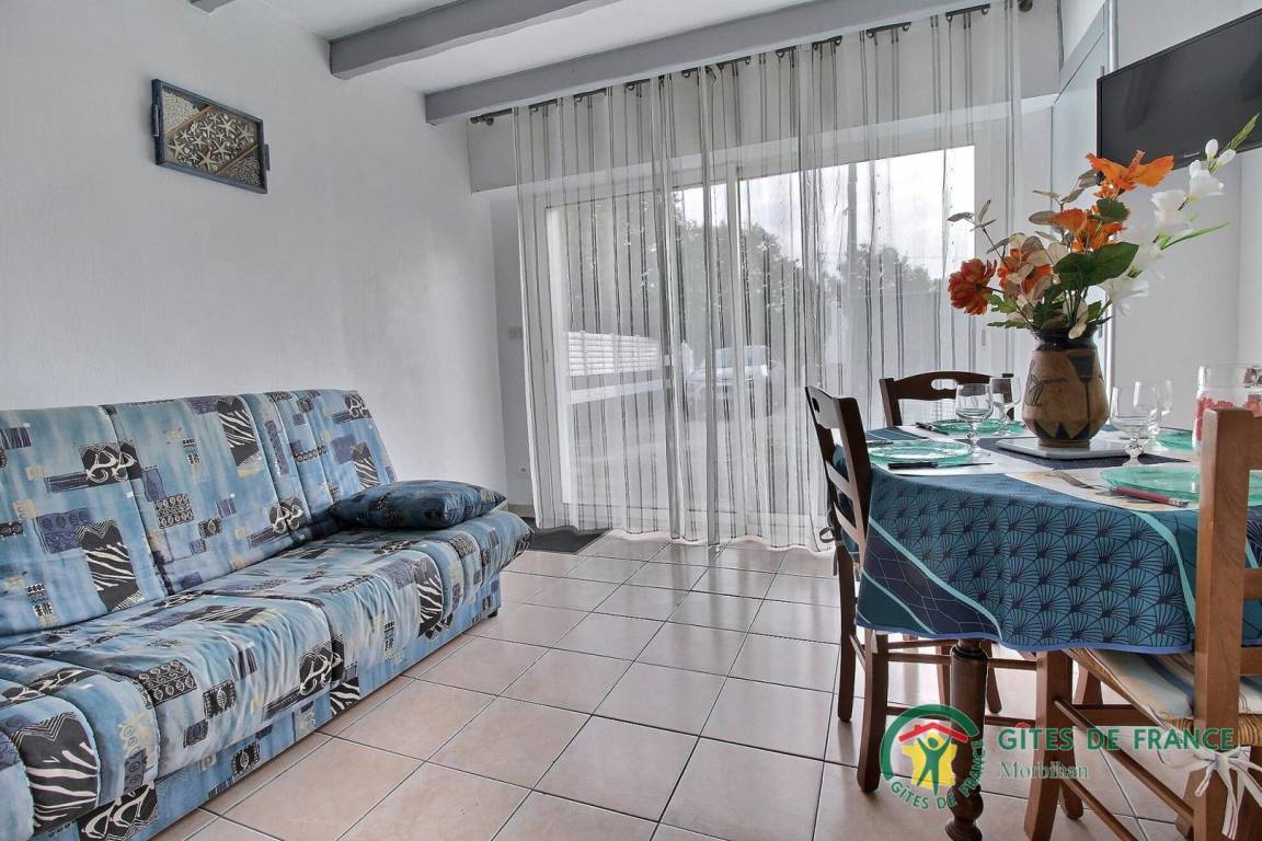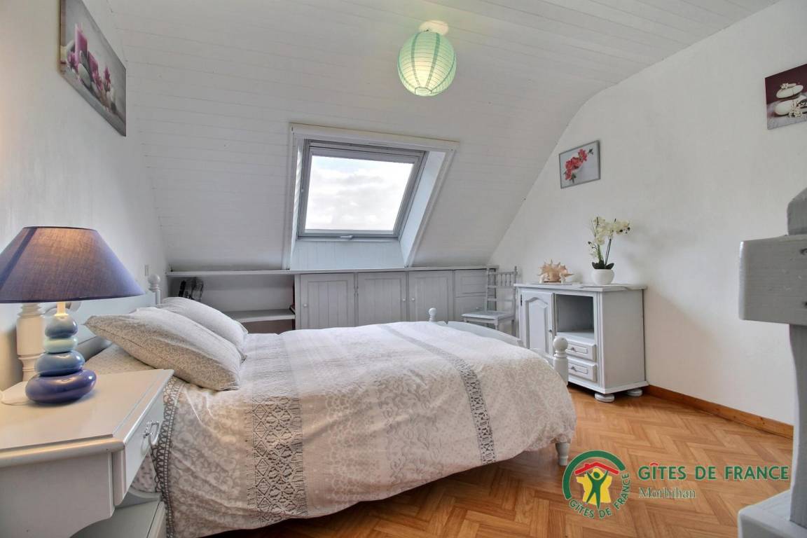 Zwischen dem Golf von Morbihan und der Bucht von Quiberon liegt Locmariaquer, ein typisches kleines bretonisches Dorf mit Hafen. Ein wunderbarer Urlaubsort, der viel zu bieten hat! Nutzen Sie die Nähe zum Meer: bis zu einem kleinen Strand am Golf sind es nur 500m, oder fahren Sie zu den schönen Stränden am Ozean (unter 2 km). Herrlich ist die Pointe de Kerpenhir mit ihrem Panoramablick über die Bucht von Quiberon. Locmariaquer besitzt wunderschöne Buchten und Strände, bleibt aber auch sehr geheimnisvoll mit den Monumenten der Megalithkultur (Dolmen, Tumulus, Menhire), über die man sich viele Legenden erzählt - v. a. über den berühmtesten unter ihnen: den zerbrochenen Riesen-Menhir. Bummeln Sie den Hafen La Trinité (6 km) entlang, dieser Badeort ist besonders für seine Segelregatten berühmt, aber auch für sein Spielkasino. Ferienwohnung auf einem gesicherten und geschlossenen Grundstück. Ferienwohnung Le Bigorneau: im EG ein Wohnbereich mit Küche, Essbereich und Sofa. Im 1. Stock: Schla