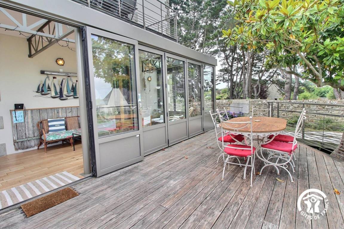 Im Erdgeschoss können Sie die Gemeinschaftsräume genießen, die Sie mit den Mietern der anderen Wohnungen teilen: ein großes Wohnzimmer (mit Fernseher, Heimkino und WLAN), eine schöne Veranda und eine Terrasse mit Meerblick, eine Waschküche, eine landschaftlich gestaltete Garten (Kanu, Grillplatz, Volleyballplatz, Gemüsegarten, Obstgarten, Pétanque, Außendusche, etc.) mit direktem Zugang zum Küstenweg!