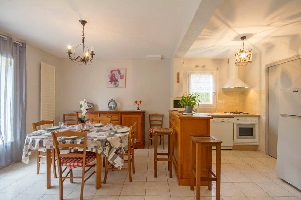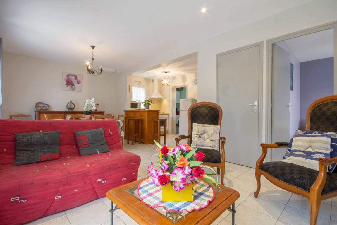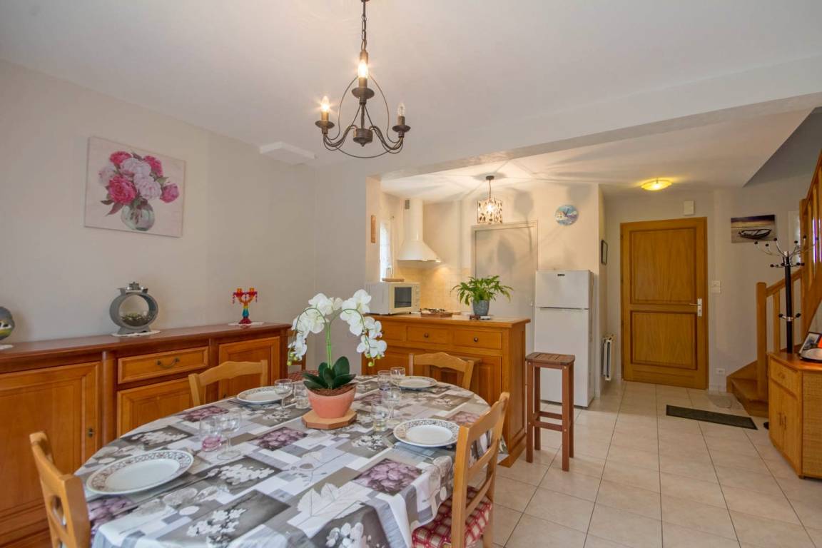 -On the ground floor a living room with kitchenette, dining area and lounge, overlooking a walled garden with terrace, 1 double room (1 bed 140) a bathroom. Toilet.-On the first floor, 2 bedrooms (1 twin / 1 double), bathroom and separate toilet.Terrace, fenced garden, private parking and private entrance.