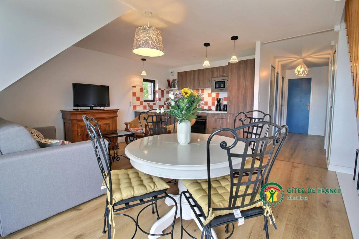 „Très bien accueilli à notre arrivée, Logement bien équipé, tant pour la qualité des couchages, la propreté, les accessoires de cuisine, dans un environnement calme directement sur les bords du golfe du Morbihan.“