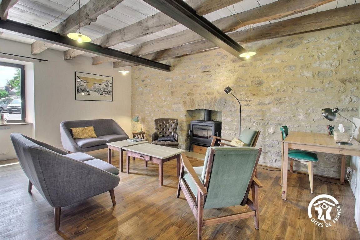 „Nous avons été très bien accueilli. Gîte conforme au descriptif. Petit plus le poêle à bois.“