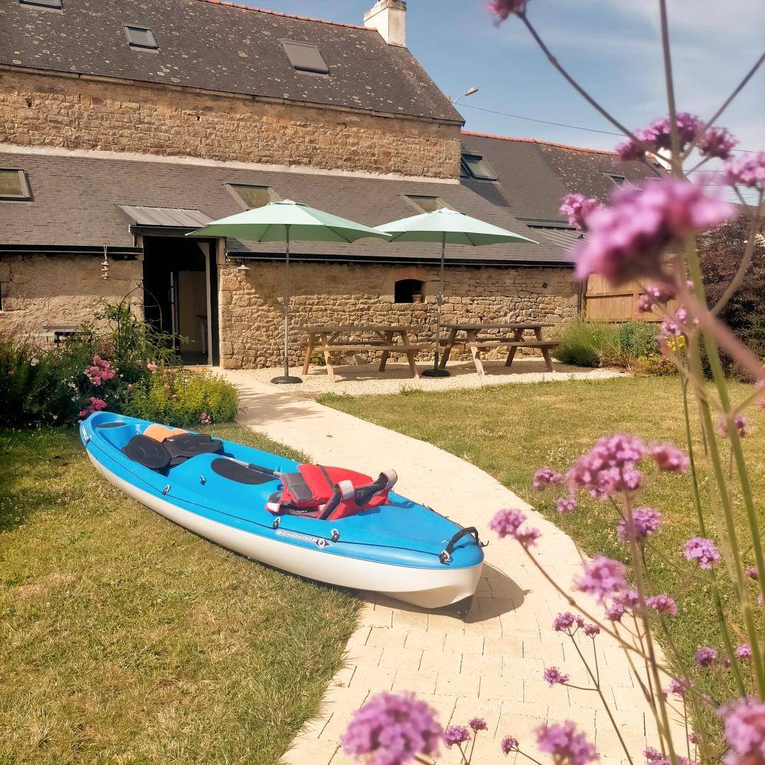 „Séjour très agréable. Nous avons pu profiter du jardin et des canoës. Nous sommes allés au parc p'tit délire ploemel (proche de l'hébergement), les petits et les grands ont bien appréciés“