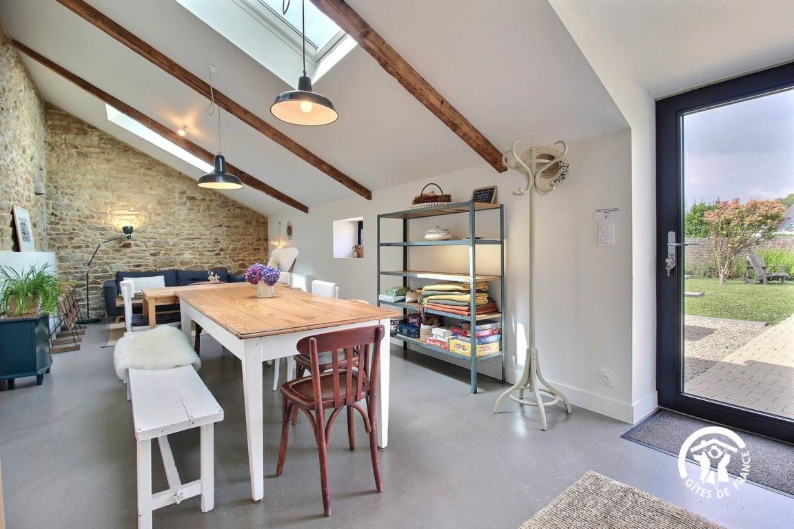 „La maison est extrêmement bien conçue avec deux pièces différentes pour manger. L'absence de télé est un plus. Les chambres sont grandes et les matelas confortables. L'extérieur est très agréable. Nous avons apprécié la proximité de la crêperie. Notre hôte était très réactive et nous l'en remercions. C'est une adresse à garder.“