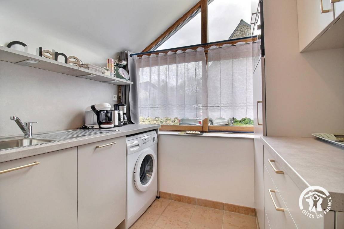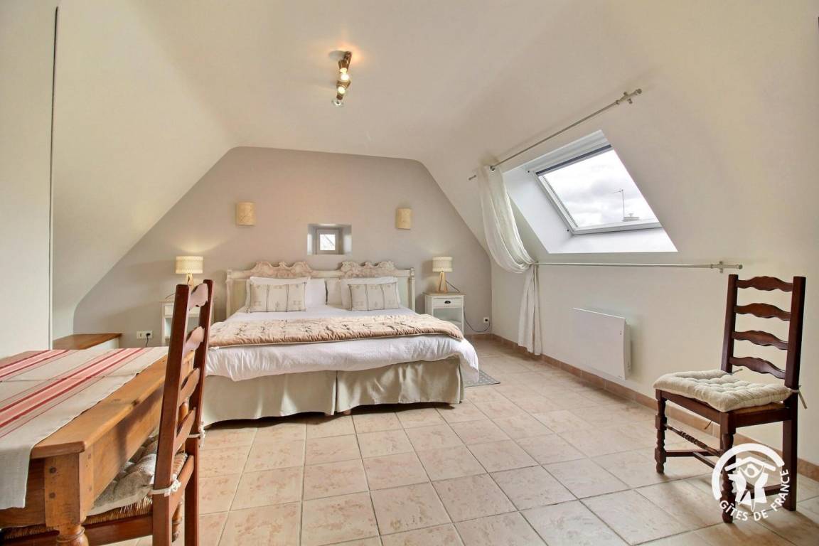 Eingebettet in die unberührte Natur einer bewaldeten Landschaft, befindet sich dieses charmante Cottage in einer renovierten Scheune. Freiliegende Balken und originales Mauerwerk schaffen eine warme und authentische Atmosphäre. Es liegt inmitten der charaktervollen Gebäude des Familienbauernhofs und bietet Ihnen Ruhe und Entspannung auf einem typisch bretonischen Apfelweingut.