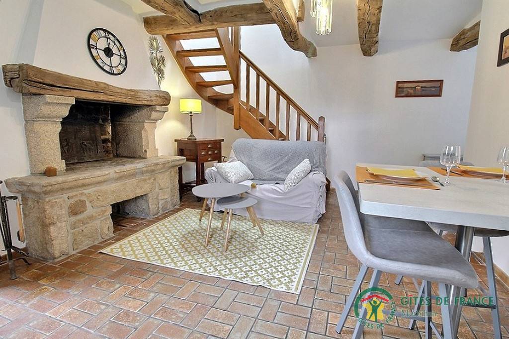 Semi-detached gite adjacent to the owner's home, 2km from LOCOAL-MENDON. Living room / kitchen corner / sitting area. 2 bedrooms (1 king size bed convertible into twin beds 2X90 cm, 1 single bed and baby cot) -beds ready on arrival- shower room, electric heating. Enclosed garden 400m², shared courtyard, garden furniture, swing, BBQ, table tennis and bicycles. Typical Breton house on a working farm.