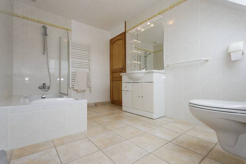 Obergeschoss: 2 Schlafzimmer (4 90-cm-Betten, umwandelbar in 180-cm-Betten), eines davon mit Bad/WC, das andere mit Duschbad und separatem WC.