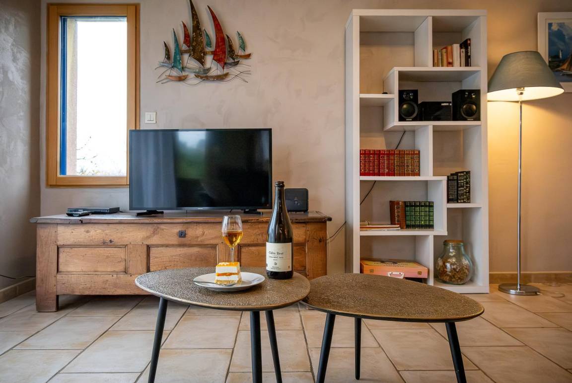 „Nous avons apprécié la qualité du gîte (propreté, équipement, confort…) -, au risque de répéter les avis précédents !- Chacun à son espace nuit avec une grande chambre et sa salle d’eau privée - prestation digne d’un très bon hôtel: Confort de la literie, qualité du linge de lit et de toilette ! - et la grande pièce de vie permet de se retrouver tous ensemble ! Nos 2 chiennes avaient aussi assez d’espace pour jouer dans le jardin clos donc sécurisé ! Nous n’avons pas utilisé ni la cheminée car il faisait très bon grâce au chauffage par le sol ni le spa (on n’a pas demandé si c’était possible à cette époque) mais nous avons découvert des balades très agréables et des lieux magnifiques sans avoir à faire des dizaines de kms en voiture. Il y a un Carrefour Market pour les petites courses à proximité. Nous avons tous apprécié ce gîte, adresse à recommander sans hésitation !“