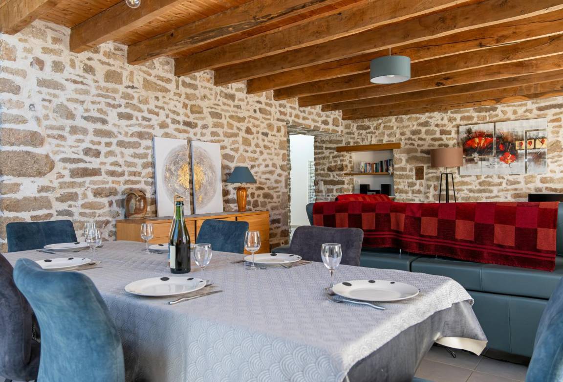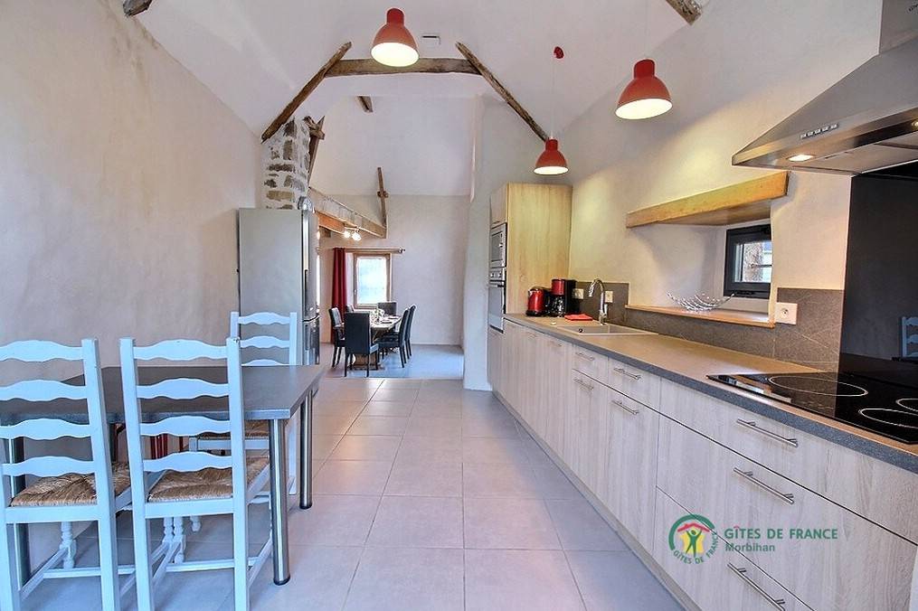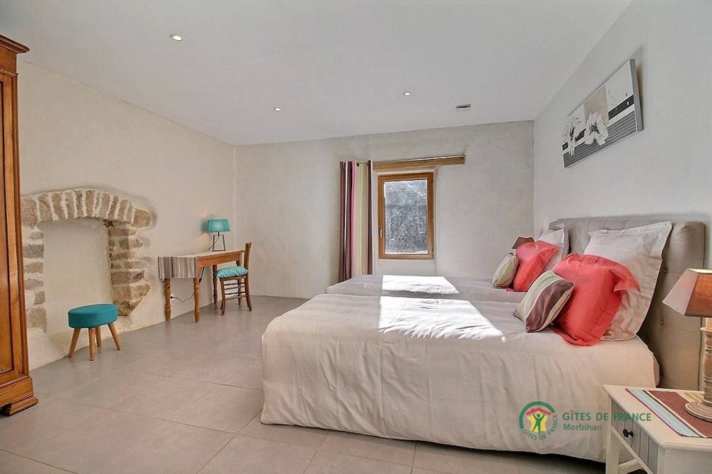 „Alors que nous avons essuyé 3 tempêtes en deux semaines, de la pluie, du vent, du verglas, du brouillard, etc. et que nous n'avons pu véritablement sortir que 2 fois, ce gîte a été particulièrement accueillant: Un bon chauffage qui dispensait une chaleur bienveillante dans toute la maison, de grandes pièces claires qui nous permettaient de circuler sans nous sentir étriqués, un calme reposant qui nous poussait à l'indolence, de la lecture... Quoi de mieux? ? Ne nous demandez pas ce que nous pensons du jardin et de sa végétation, du hameau, des excursions, du Morbihan... Nous n'en savons rien. Il nous faudra revenir et ce sera avec grand plaisir.“