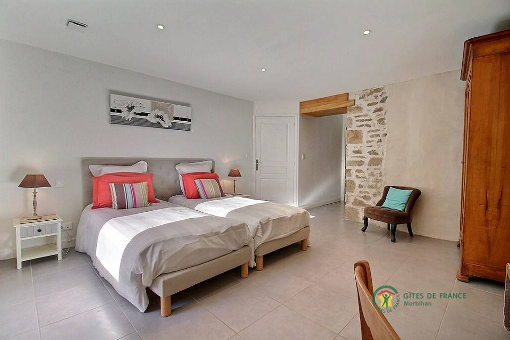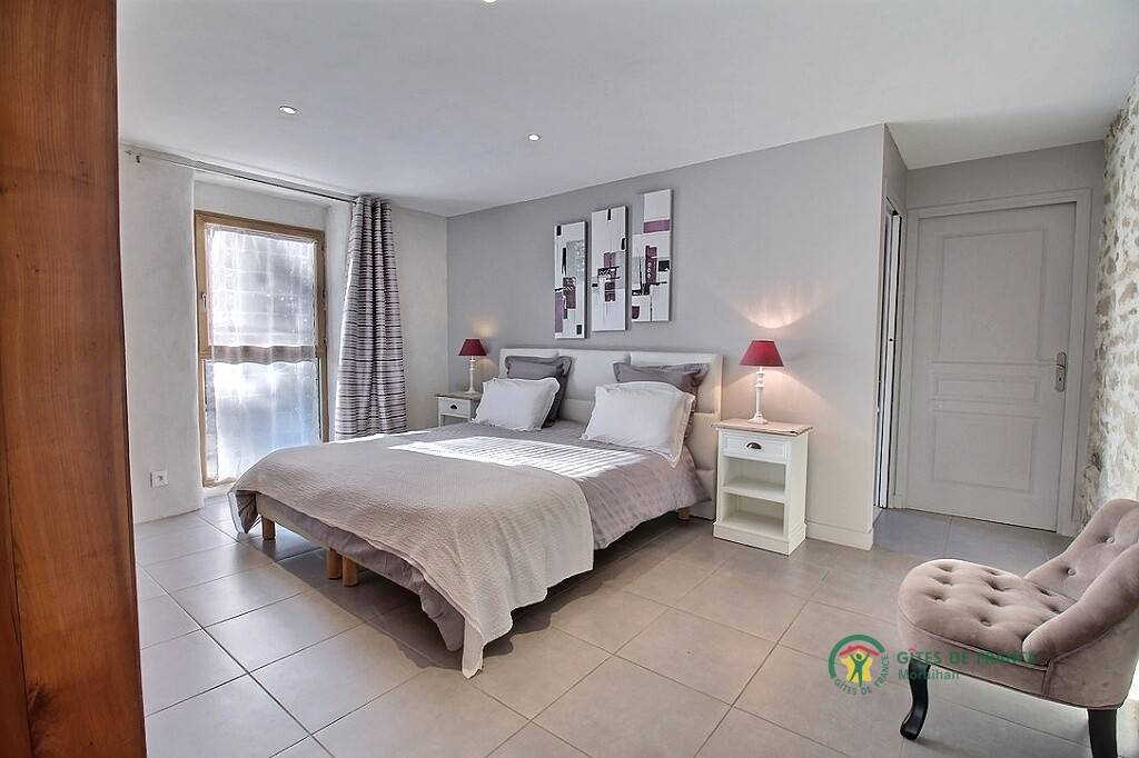 Der Ort Locoal-Mendon mit 30 km Küstengebiet bietet abwechslungsreiche Landschaften: natürliche Strände, Sümpfe und typisch bretonische Häfen, am Meeresarm Ria d'Etel die Insel Saint Cado, eine der schönsten Gegenden der Region. Liebhaber von Badespaß und Wassersport erfreuen die Strände mit feinem Sand von Erdeven in nur 15 km Entfernung. Ebenerdiges, modernes und geräumiges Ferienhaus mit allem Komfort und smartem Dekor. Wohnbereich zum Wohlfühlen von 50m²: Küche, Esszimmer/Wohnzimmer. 3 Zi. mit jeweils WC und eigenem anliegendem Bad mit Dusche. Pro Zimmer ein Doppelbett 180x200, auseinanderstellbar in 2 Betten 90x200. Gartenmöbel.