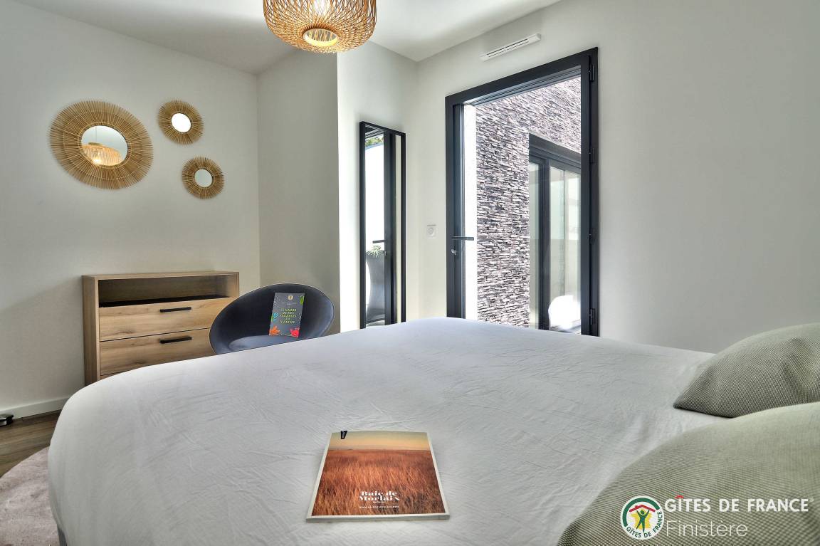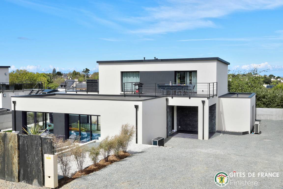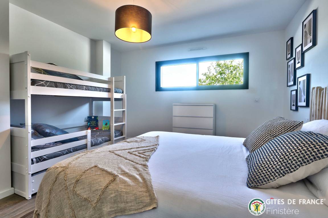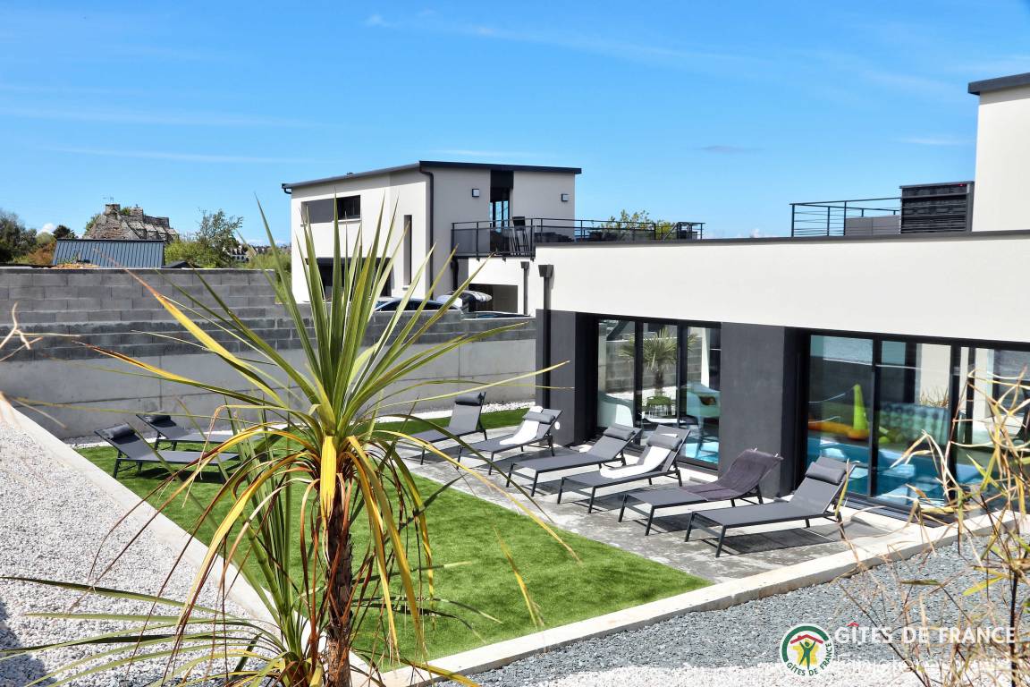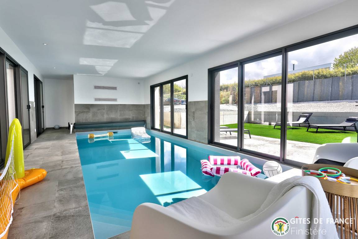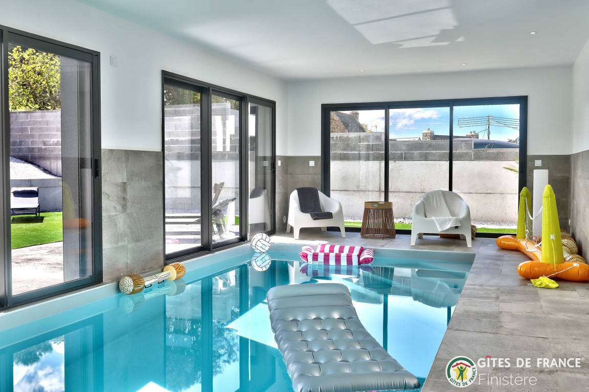 „Logement spacieux, calme et très moderne avec vue au loin sur le petit port de Locquirec, séjour très agréable en famille, avec piscine privative en intérieur pour les jours où le temps n'est pas au rendez-vous (ou bien en soirée pour les plus énergiques !). Je recommande.“