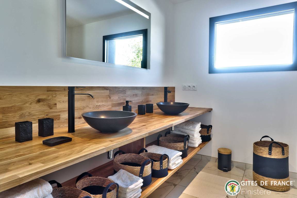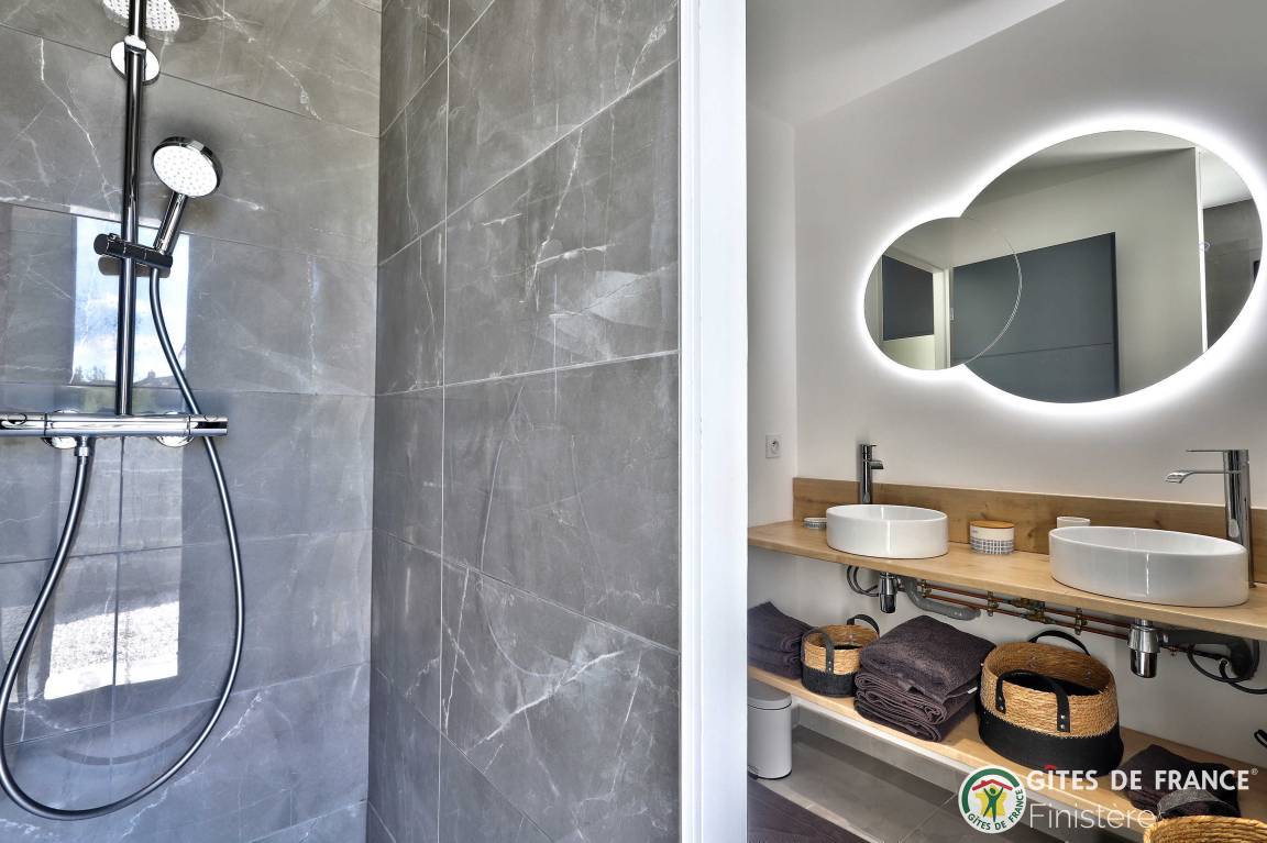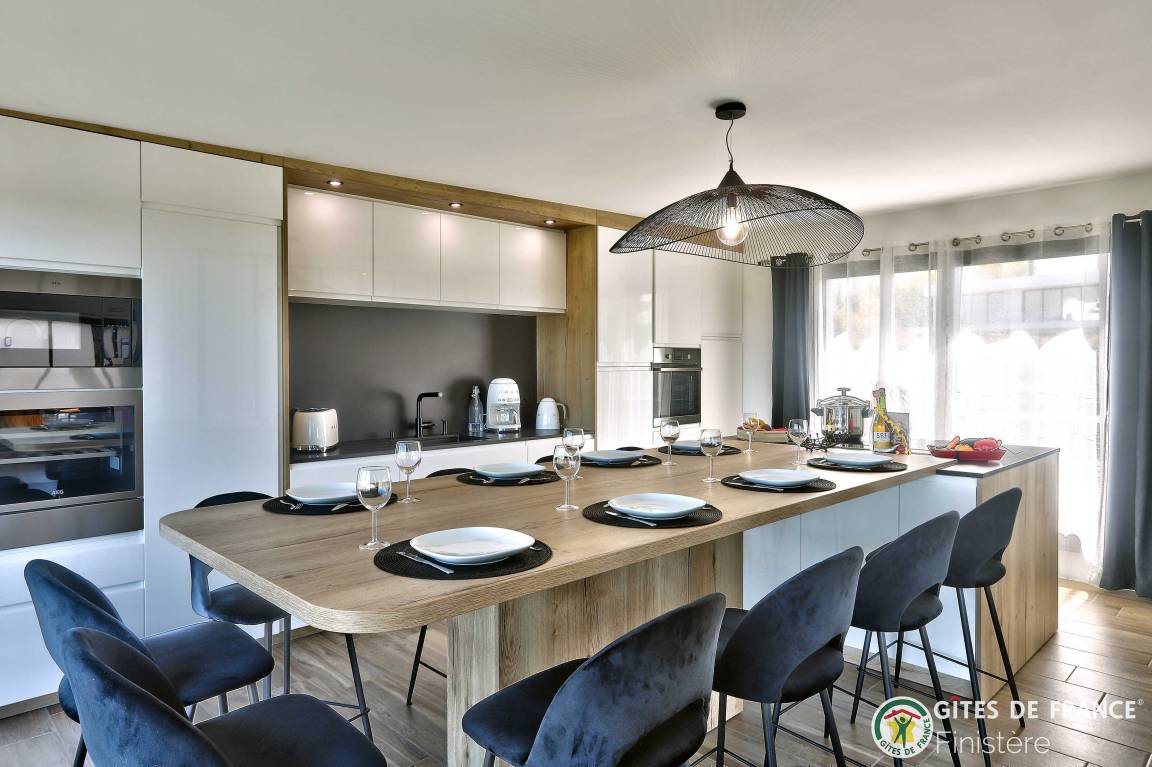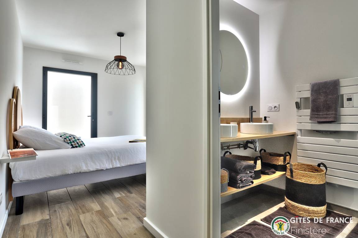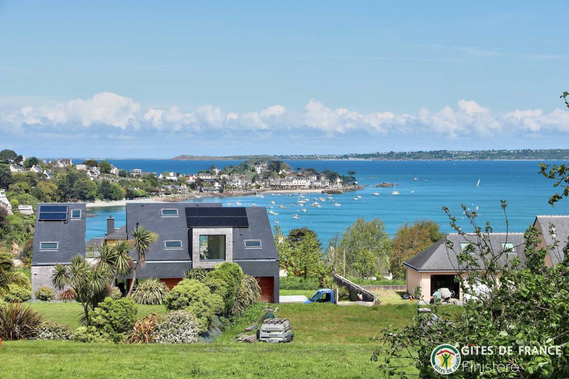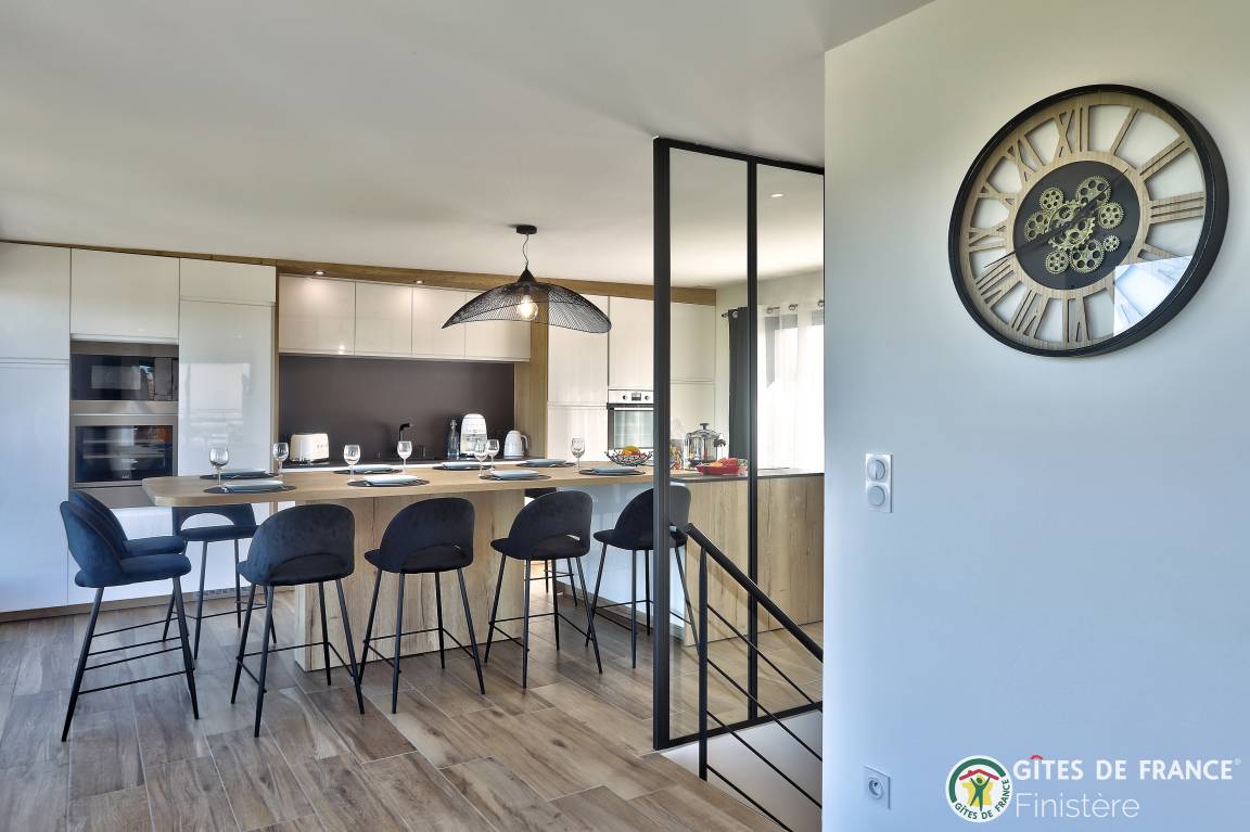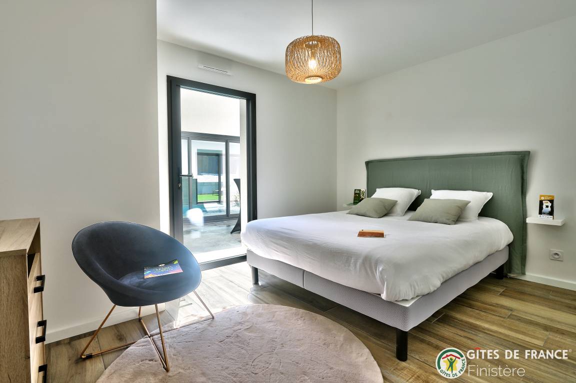 „Logement spacieux, calme et très moderne avec vue au loin sur le petit port de Locquirec, séjour très agréable en famille, avec piscine privative en intérieur pour les jours où le temps n'est pas au rendez-vous (ou bien en soirée pour les plus énergiques !). Je recommande.“