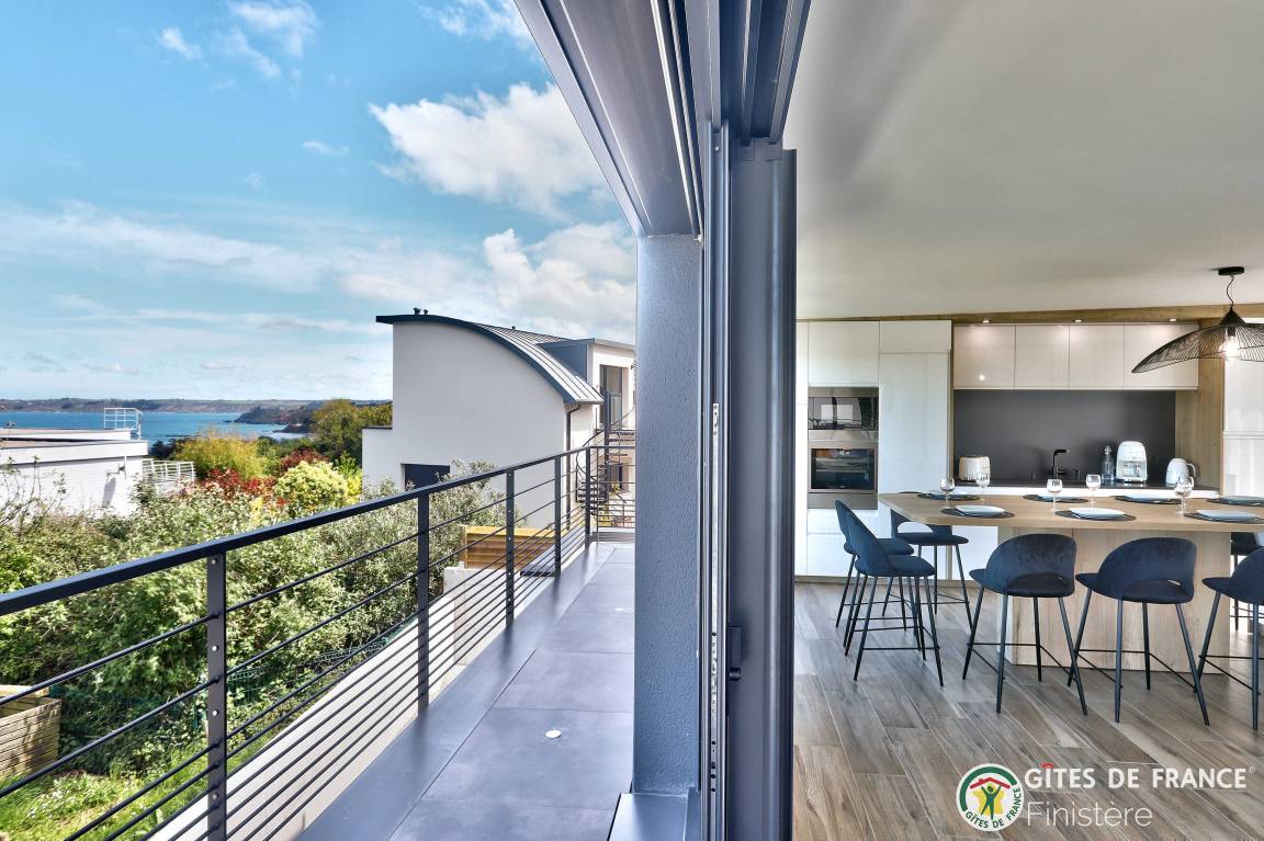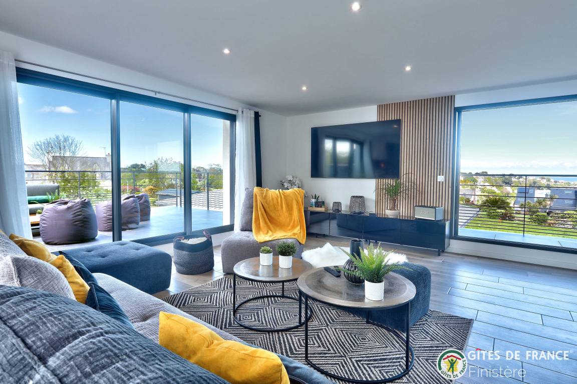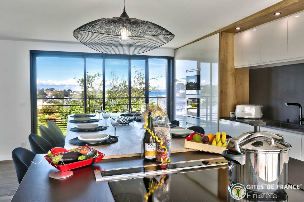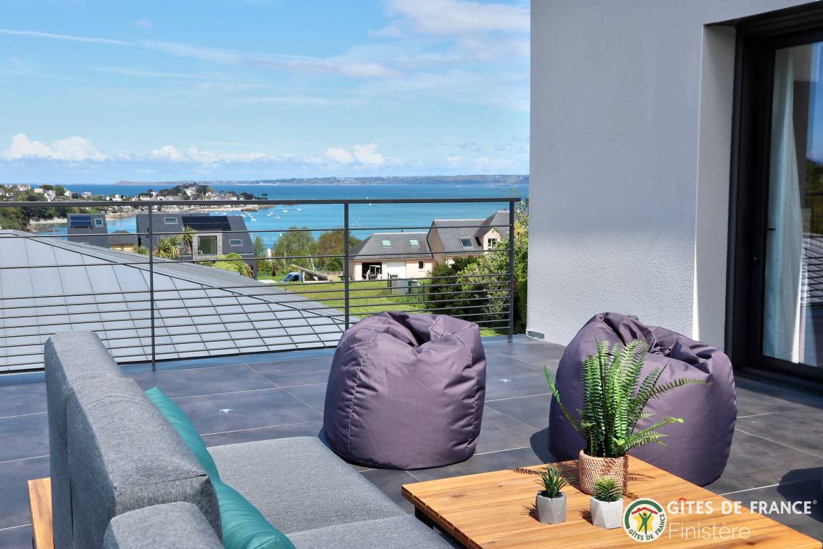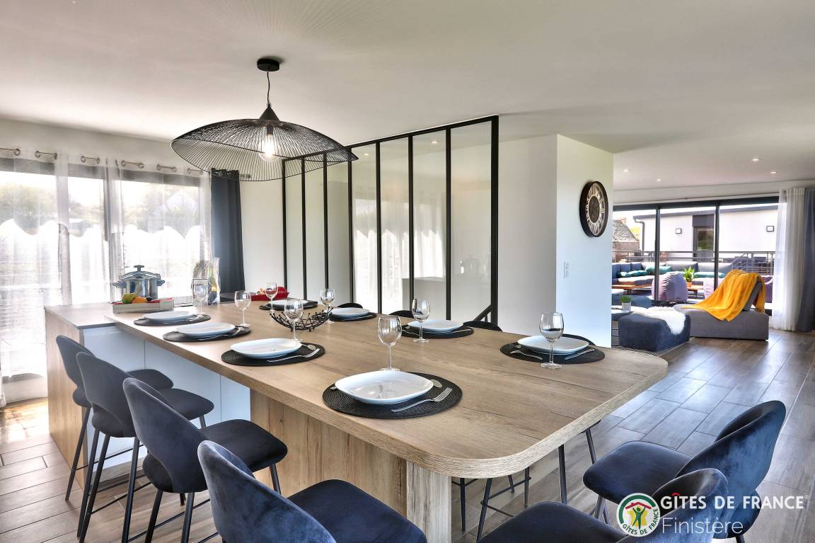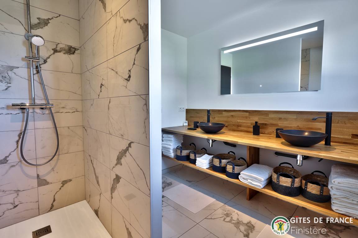 „Logement spacieux, calme et très moderne avec vue au loin sur le petit port de Locquirec, séjour très agréable en famille, avec piscine privative en intérieur pour les jours où le temps n'est pas au rendez-vous (ou bien en soirée pour les plus énergiques !). Je recommande.“
