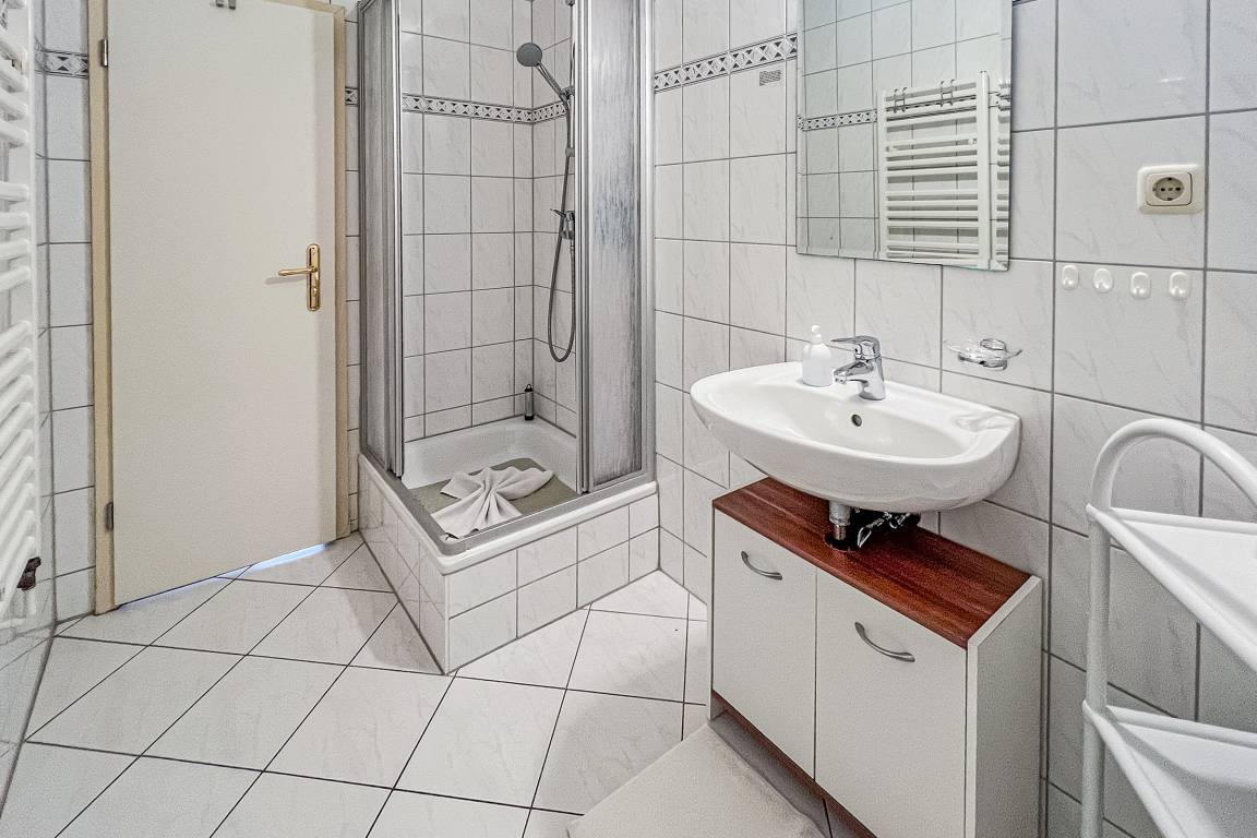 Richtige Urlaubsstimmung kommt in dem schönen Garten der Ferienwohnung auf. Im Badezimmer finden Sie eine Dusche und einen Haartrockner.