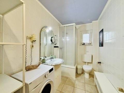 Es verfügt über ein ruhiges Schlafzimmer und ein gemütliches Wohnzimmer mit Schlafmöglichkeit für zwei weitere Gäste. Alle Räume sind mit Verdunklungsvorhängen ausgestattet. Das moderne Bad mit Dusche und Waschmaschine sorgt für zusätzlichen Komfort.