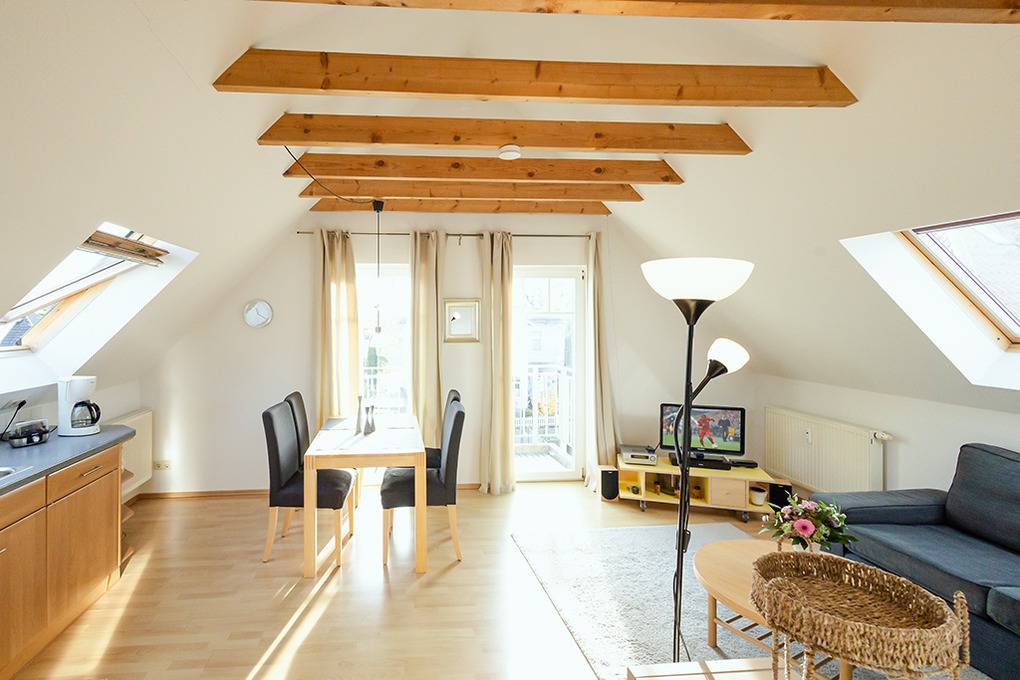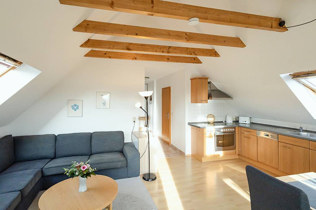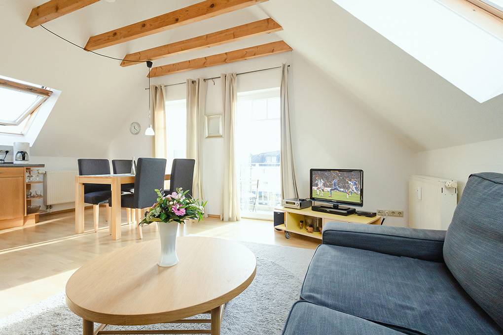 Haus: Gepflegtes Apartmenthaus mit modernen Wohnungen. Geschmackvolle Einrichtung mit hochwertiger Möblierung und kostenlosem Internetzugang über W-Lan. Zentralheizung. Nichtraucherwohnungen. Balkon mit Sitzmöbeln. Fahrradschuppen. 1 Pkw-Stellplatz/Fewo.