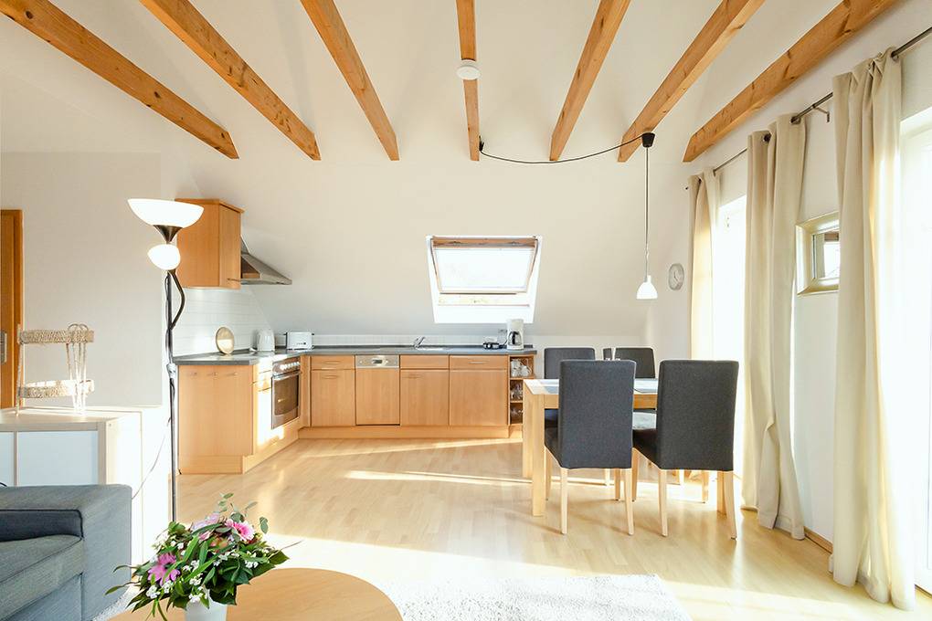 Nebenkosten Endreinigung 78 € (wird bei Buchung erhoben). Kurtaxe. Bettwäsche, Handtücher mitzubringen. Zusätzliche Leistungen Kostenloser Internetzugang über W-Lan. 1 Pkw-Stellplatz im Preis inklusive. Haustier 5 €/Tag, max. 2 Hunde (Anmeldung, wird bei Buchung erhoben).Räume & Aufteilung