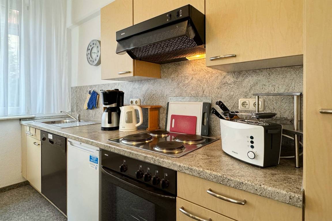 Die toll ausgestattete Küche bietet nicht nur einen Kühlschrank und Ofen, sondern auch eine Mikrowelle und Filterkaffeemaschine! Für Ihren PKW steht außerdem ein Parkplatz (Gebührenpflichtig) zur Verfügung.