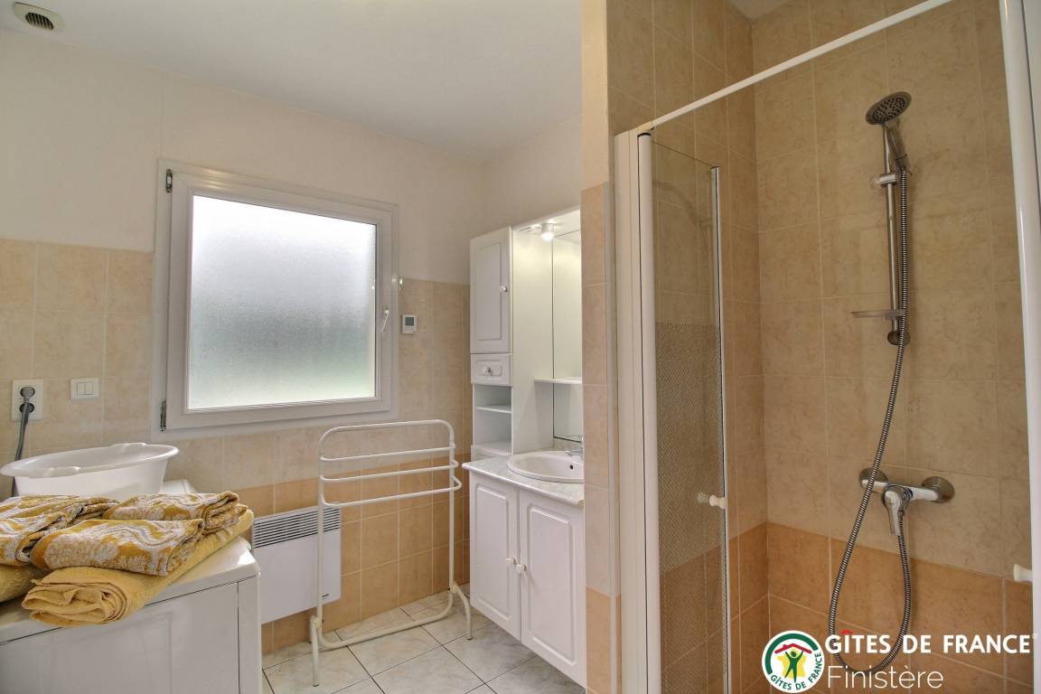 Dieses unabhängige Haus befindet sich in der Nähe eines weiteren Gites und bietet einen schönen Meerblick. Wohnraum mit Kochecke, Doppelzimmer, Dusche, sep. WC. 1.Stock: Zweibettzimmer, Dusche mit WC. E-Heizung. Zustellbett auf Anfrage. Garten, Terrasse. Gartenmöbel. Grill.