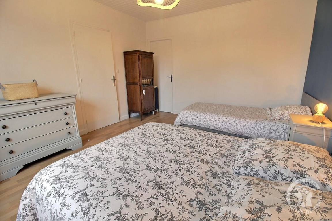 - Etage: 1 Schlafzimmer (1 Bett 140x190), 1 Schlafzimmer (1 Bett 140x190, 1 Bett 90x190), Badezimmer mit Badewanne.