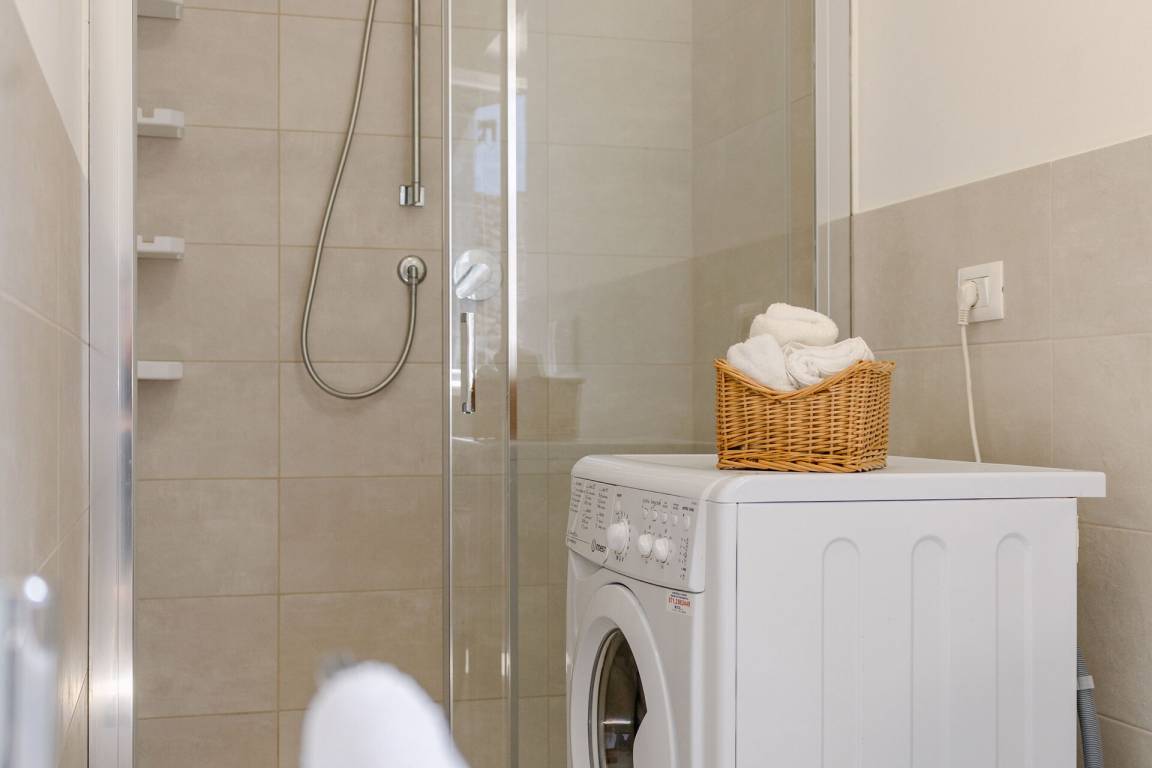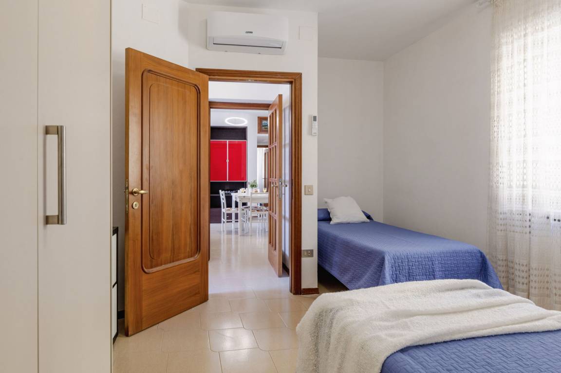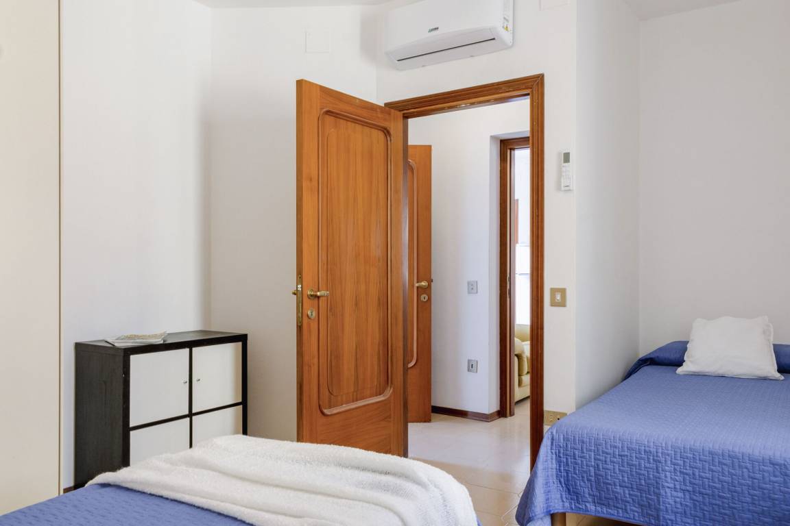 Schlafzimmer mit Bad 2: zwei Einzelbetten, WiFi Internet, Klimaanlage, Waschbecken, WC, Bidet, Dusche, Waschmaschine.