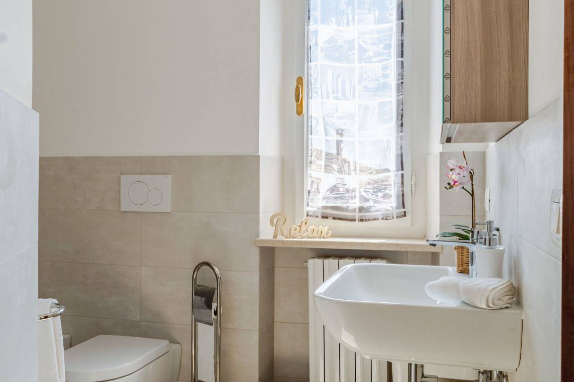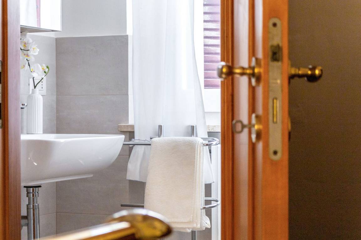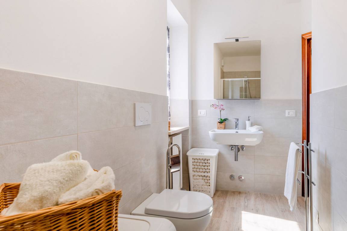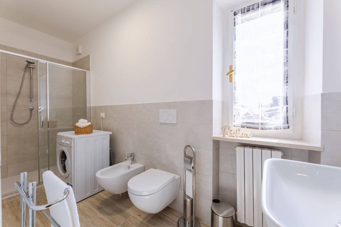 Schlafzimmer mit Bad 2: zwei Einzelbetten, WiFi Internet, Klimaanlage, Waschbecken, WC, Bidet, Dusche, Waschmaschine.