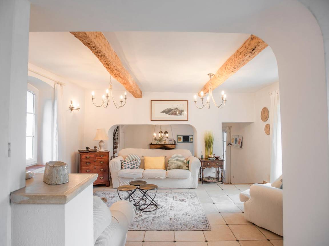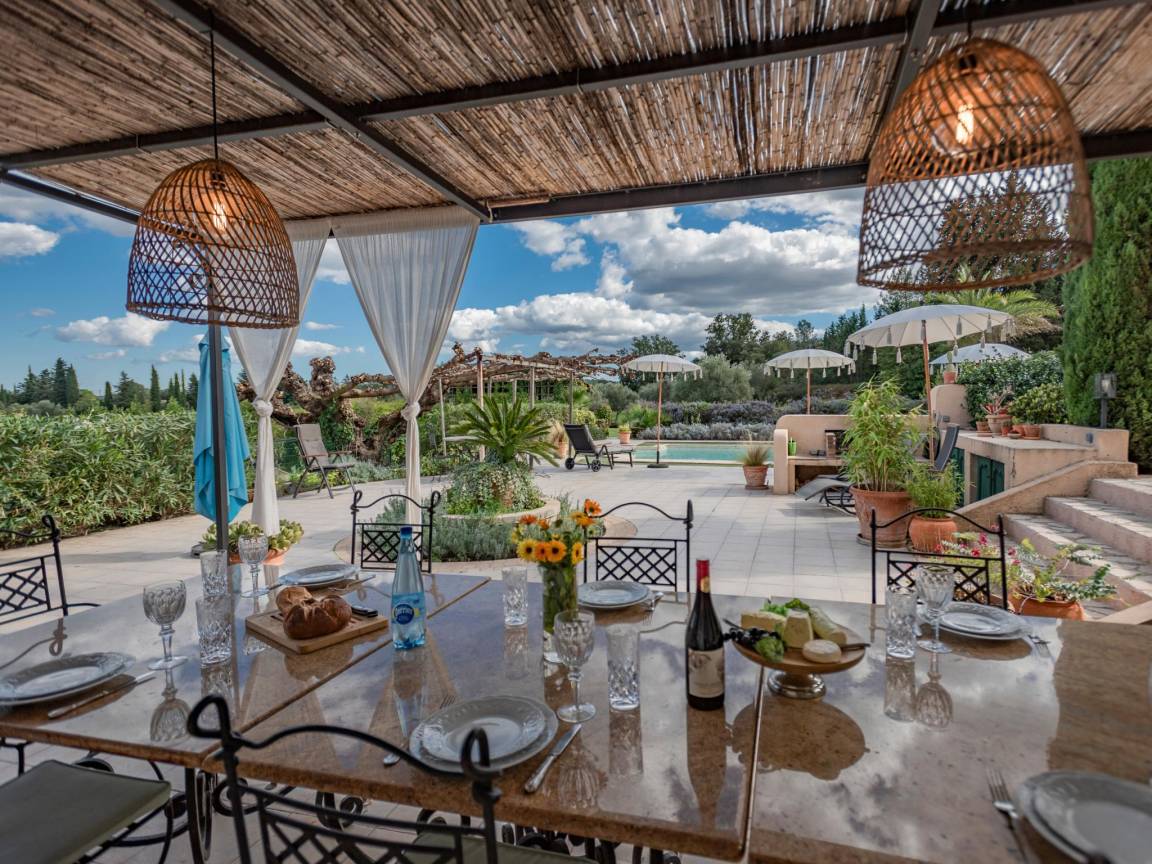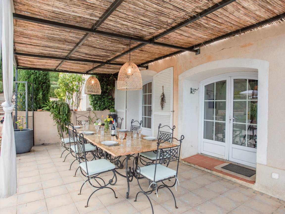 Hausbeschreibung : Diese schöne Villa bietet bequem Platz für eine oder zwei Familien. Die Lage in fußläufiger Entfernung zum Dorf Lorgues ist ideal (frisches Brot zum Greifen nah) und der große umzäunte Garten bietet viel Platz für Kinder zum Fußballspielen. Beginnen Sie den Tag mit einem Sprung in den privaten Pool oder lehnen Sie sich auf der überdachten Terrasse mit Blick auf den Pool und den Garten zurück. Können Sie sich vorstellen, dort zu sitzen?
