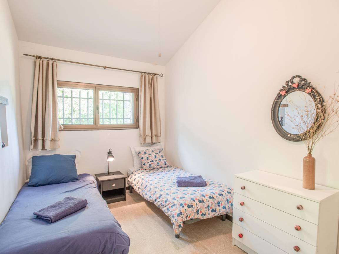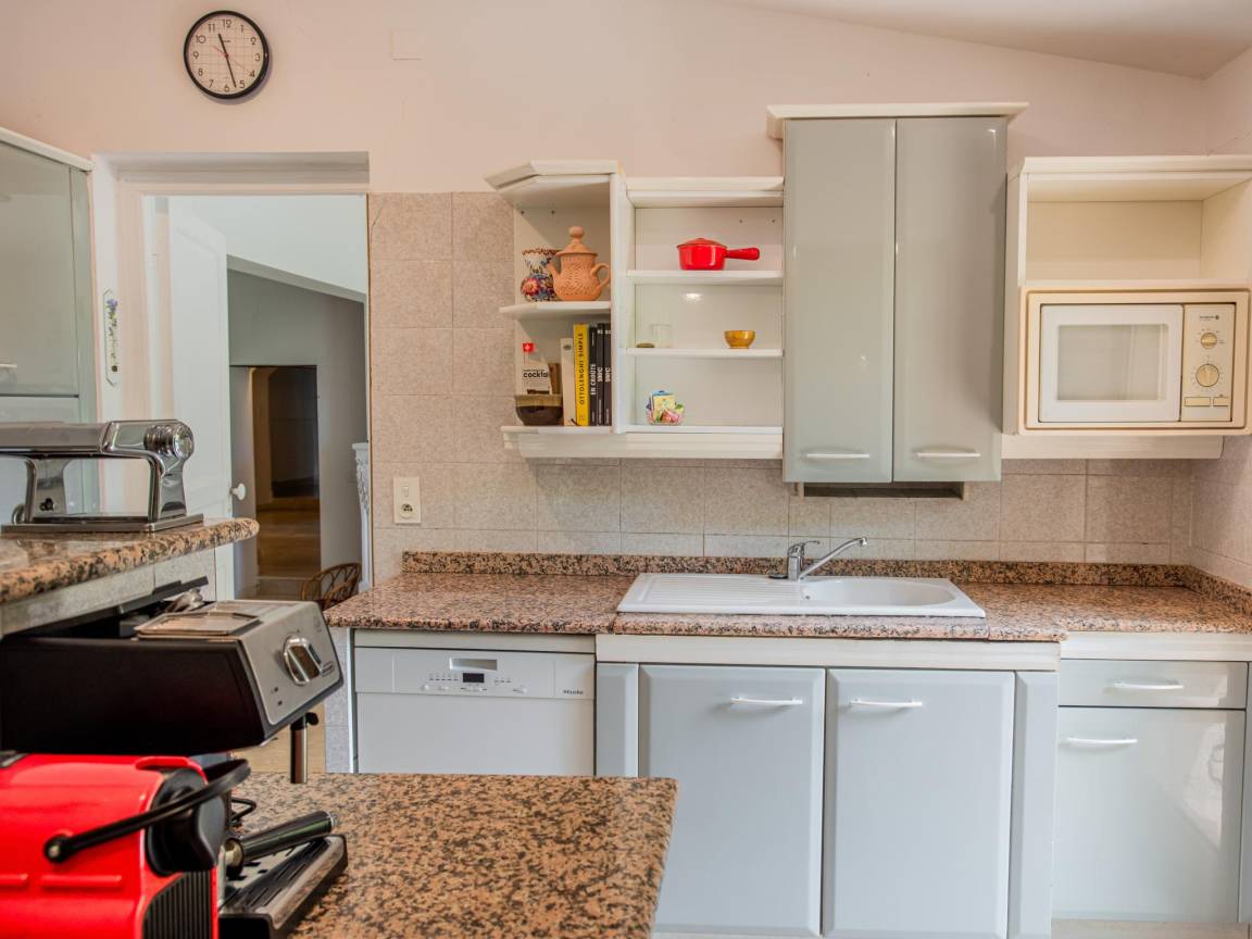 Layout : Parterre: Diele mit Klimaanlage , Wohnzimmer mit TV, Sitzecke, Beamer , Esszimmer mit Esstisch , Küche mit Wasserkocher, Kochherd(5 Kochplatten, Gas), Kaffeemaschine(cups), Backofen, Geschirrspüler, Kühlschrank , 2x Schlafzimmer mit 2x Einzelbett(90 x 190 cm), Fliegengitter, Ventilator , Badezimmer mit Dusche, 2x Waschbecken, Toilette , Arbeitszimmer, Toilette, Waschraum mit Kühl-/Gefrierkombination, Waschmaschine