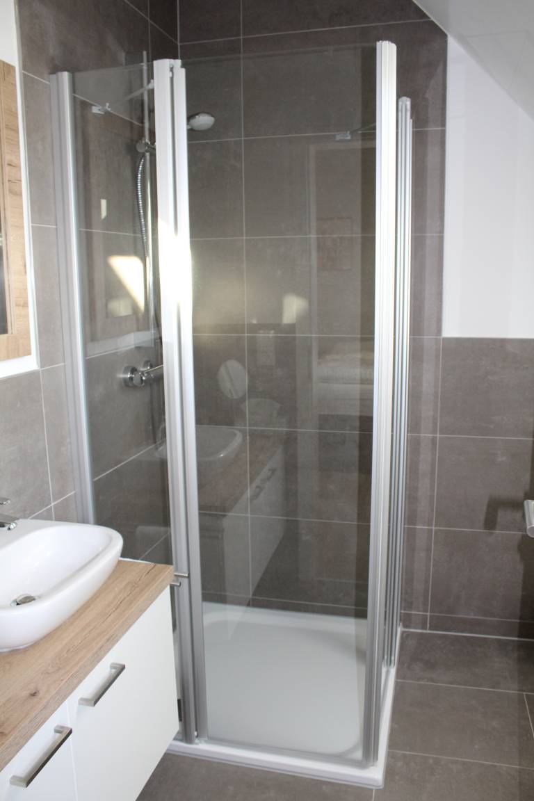 Im Obergeschoss erwarten Sie drei liebevoll gestaltete Doppelzimmer, die speziell für unsere Gäste konzipiert wurden. Jedes Zimmer bietet den Komfort eines eigenen Bads, sodass Sie sich nach einem langen Tag entspannen und erholen können.