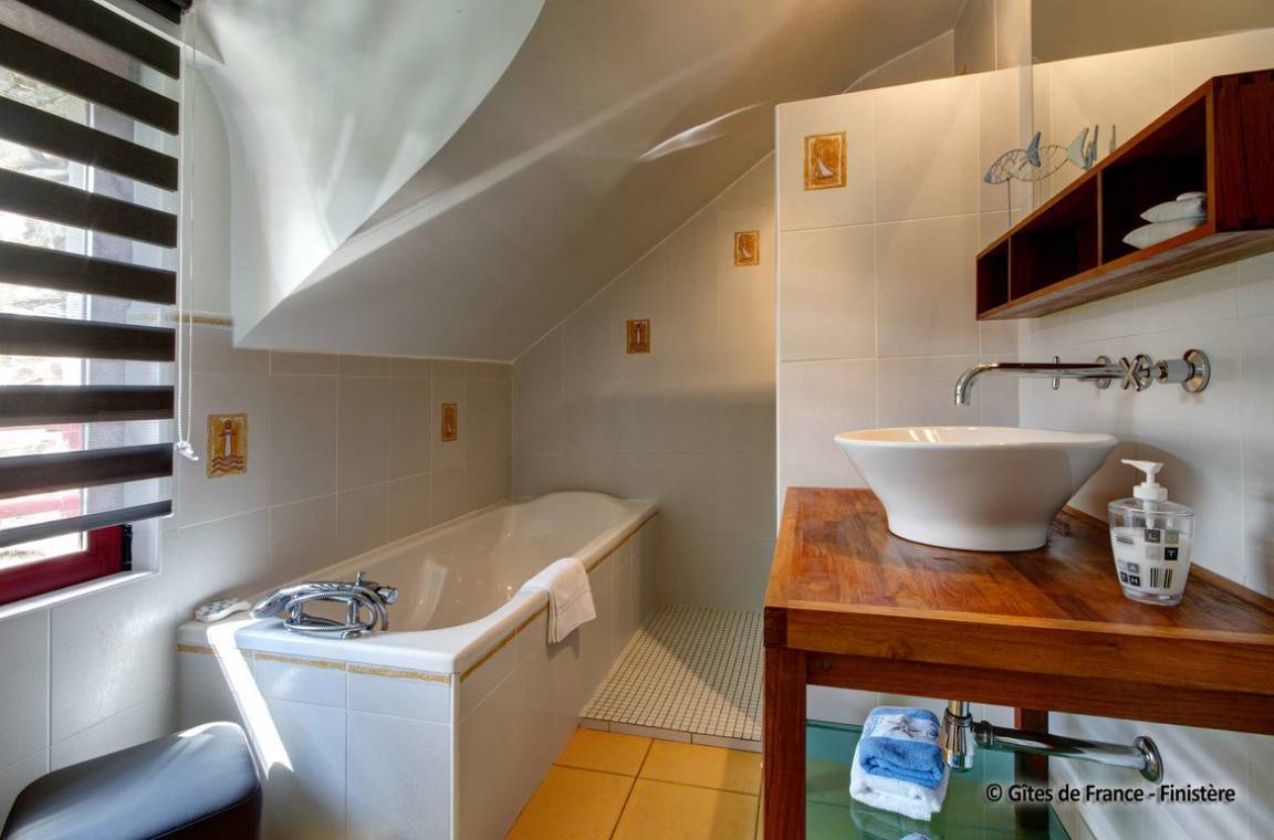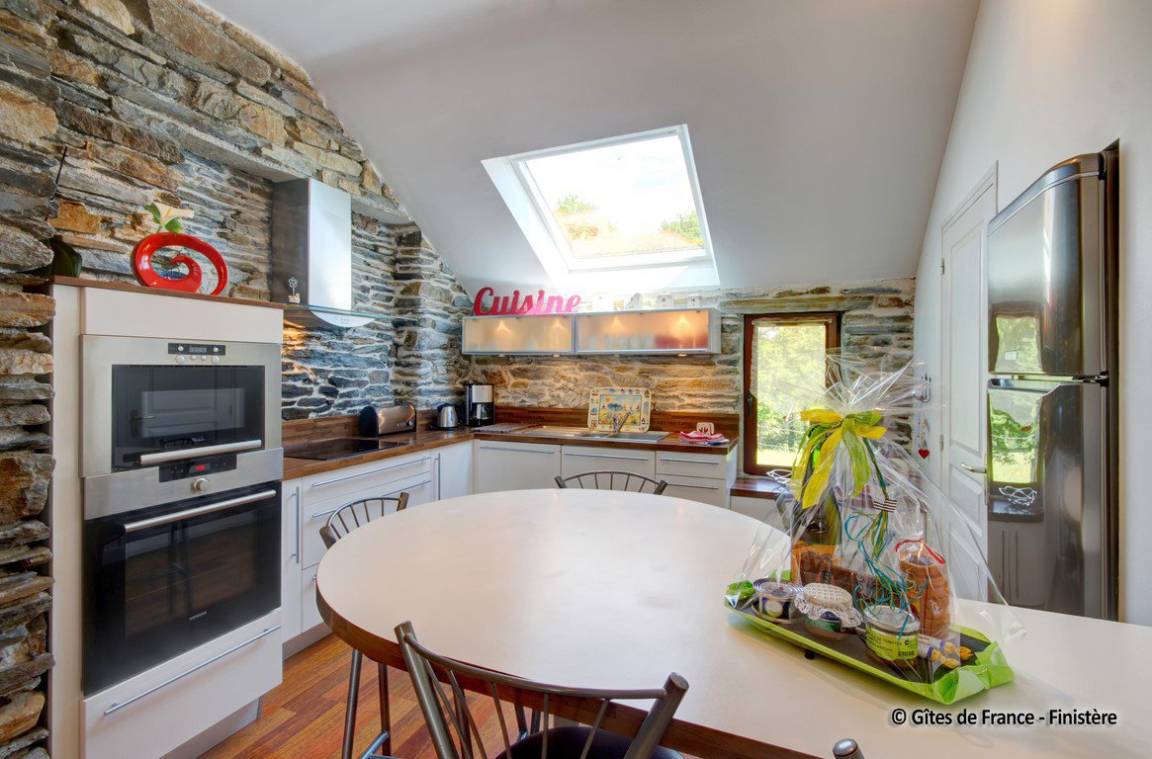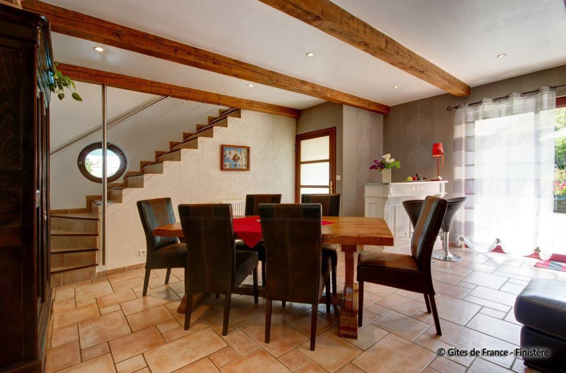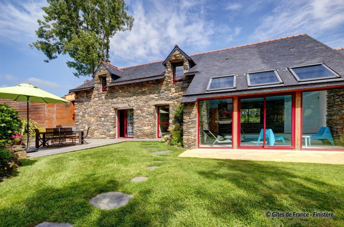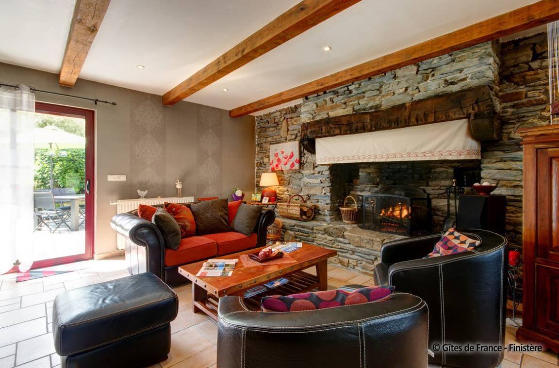 Entzückendes Haus in Südlage zwischen Quimper und Châteaulin. Die Eigentümer wohnen nebenan. EG : Wohn-/Eßraum mit Kochecke, Kamin, Vorratsraum, WC, beheiztes Privatschwimmbecken, Balneo, Dusche, sep. WC. 1.Stock: 2 Doppelzimmer (eins mit Bettbreite 1,60m, das andere mit Bettbreite 1,80m), Zweibettzimmer, Bad mit Dusche und WC. Holzheizung. Wi-Fi. Die Betten sind bezogen. Garten, Grill, Gartenmöbel. Terrasse.
