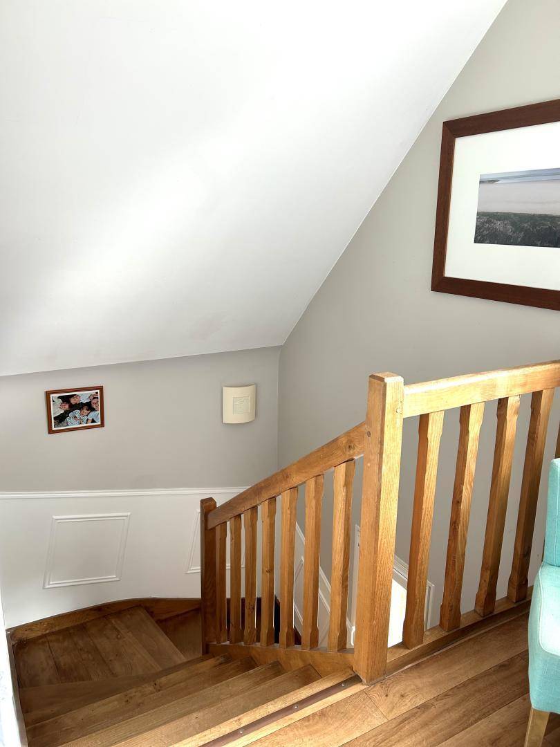 Im Obergeschoss befinden sich drei Schlafzimmer (zwei Einzelbetten, ein Einzelbett und ein Doppelbett, 160 x 200 cm), ein Badezimmer (mit Badewanne) und ein WC.