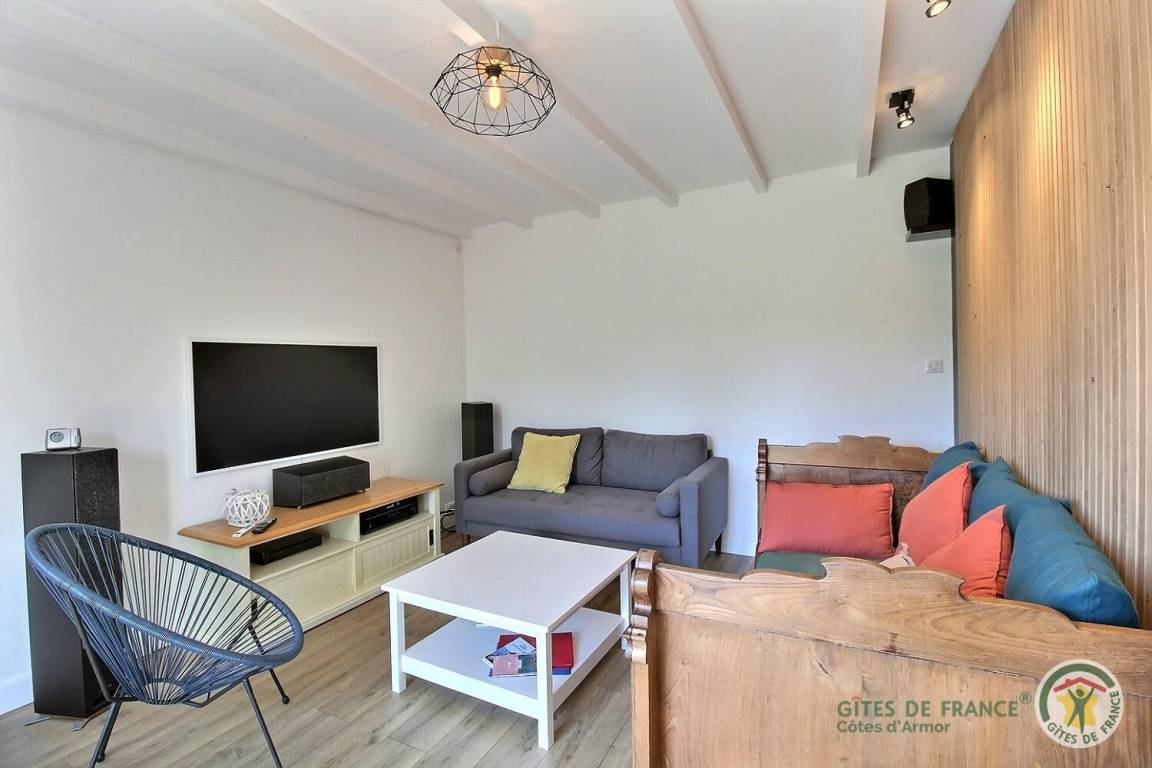 „Super séjour. La région est très belle et le gîte parfait à tous points de vue. Situé dans un petit village calme, on trouve cependant des commerces d'excellente qualité accessibles à pied (boulangerie, épicerie et boucherie). La navette qui dessert la côte de Granit rose passe dans le village ce qui est pratique si l'on souhaite rejoindre Perros sans prendre la voiture. La maison est très bien décorée, très fonctionnelle et la terrasse très agréable.“