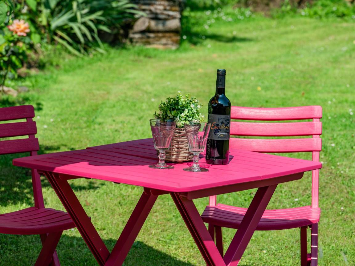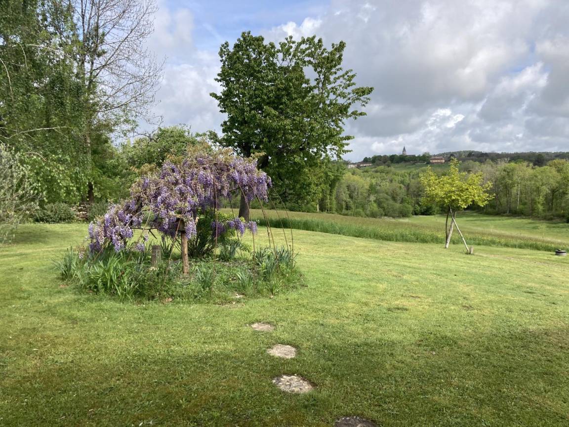 Hausbeschreibung : Kleines, aber sehr sauberes Ferienhaus mit schönem Garten und herrlichem Blick über die Landschaft und in der Ferne auf die Kirche von Loubejac. Modernes Interieur in einem alten französischen Haus, ganz auf Ruhesuchende und Naturliebhaber ausgerichtet, da der Eigentümer mit Leidenschaft einen schönen Garten mit vielen Blumen auf dem sehr großen Grundstück angelegt hat.