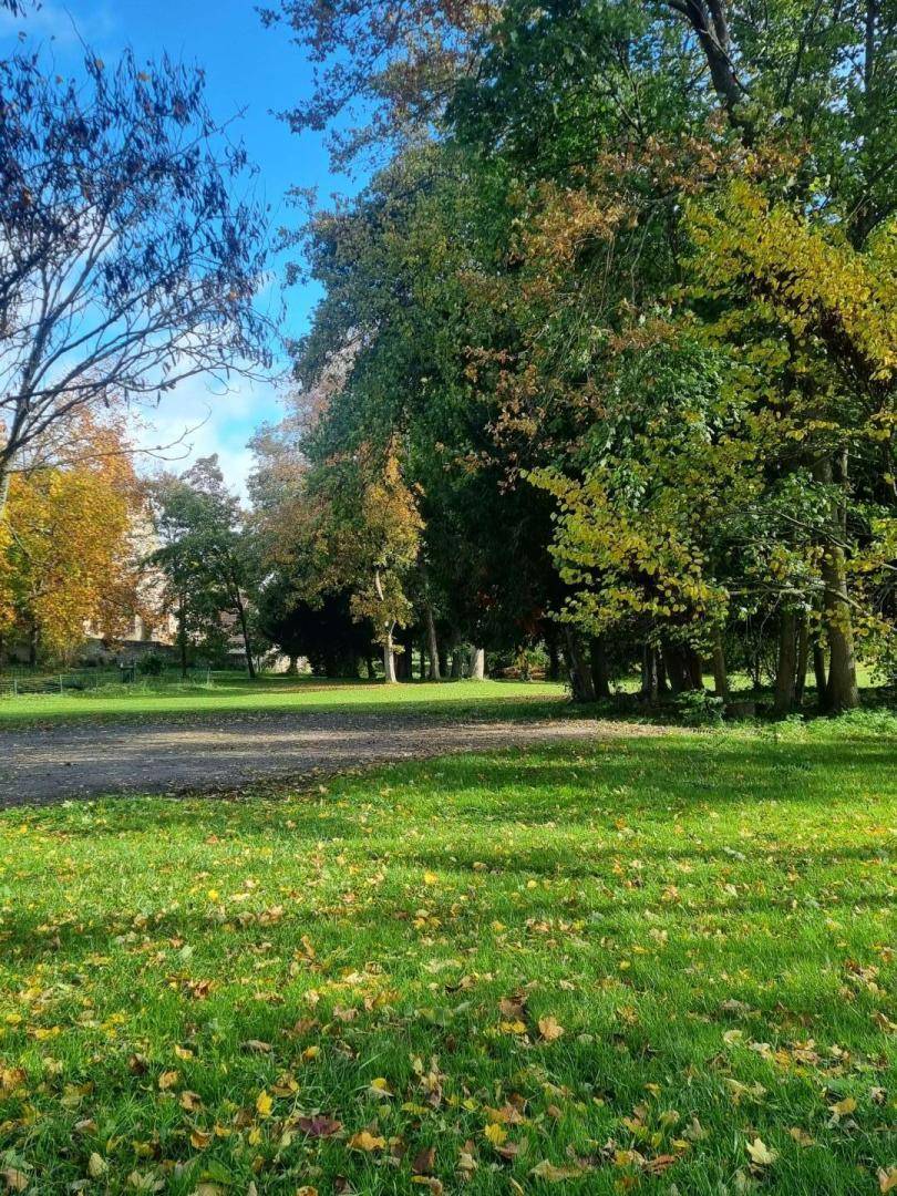 Das helle Wohnzimmer mit Blick auf den Park lädt nach einem Wandertag zum Entspannen ein. Das Anwesen verbindet den Charme der alten Welt mit modernem Komfort und schafft eine warme Atmosphäre. Kinder finden hier einen sicheren, natürlichen Spielplatz.