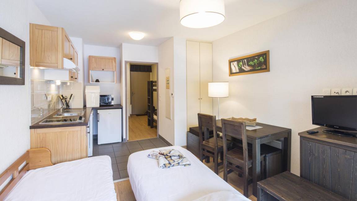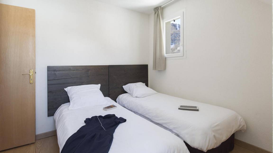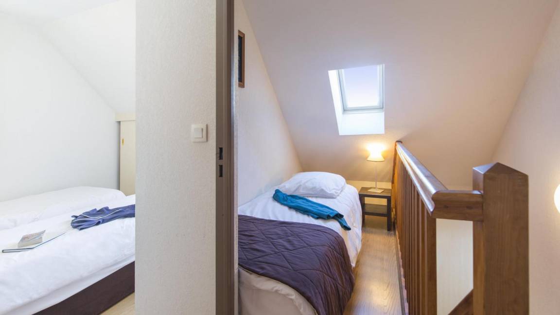 Fläche von ungefähr 44 m². Wohnzimmer mit Ausziehschlafcouch für 2 Personen. Schlafzimmer mit Doppelbett. Schlafzimmer mit Einzelbett. Schlafbereich mit 2 Stockbetten. Kochnische mit Wasserkocher, Kaffeemaschine (à filtre), Toaster, Geschirrspülmaschine, Mikrowellenherd, 2 Glaskeramikkochfelder, Kühlschrank. Badezimmer mit Badewanne. separates WC. Waschräume mit Dusche, WC. Balkon ODER Terrasse. Die oberen Betten sind nicht für Kinder unter 6 Jahren geeignet.